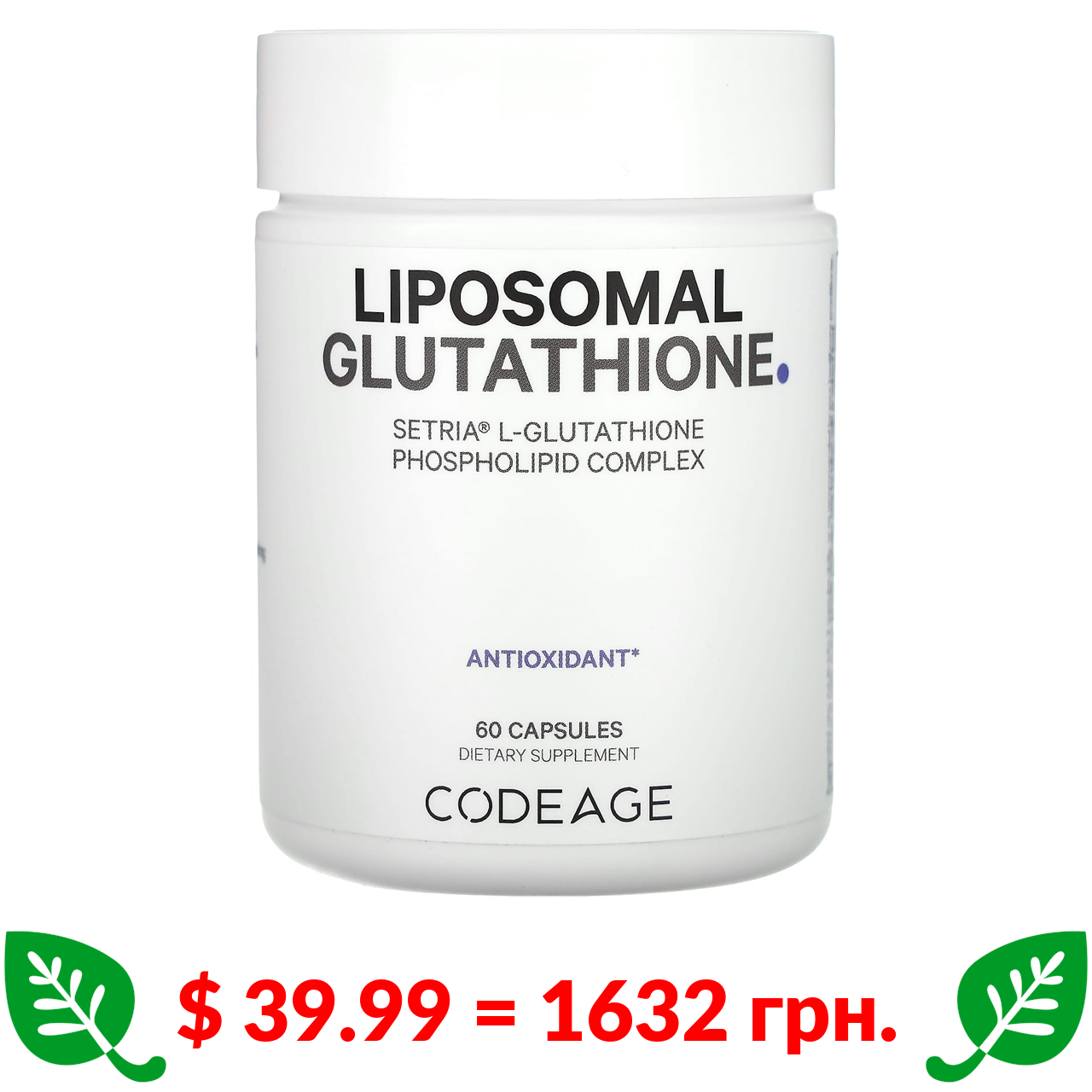$ 39.99 = 1632 грн. Codeage, ліпосомальний глутатіон, 60 капсул