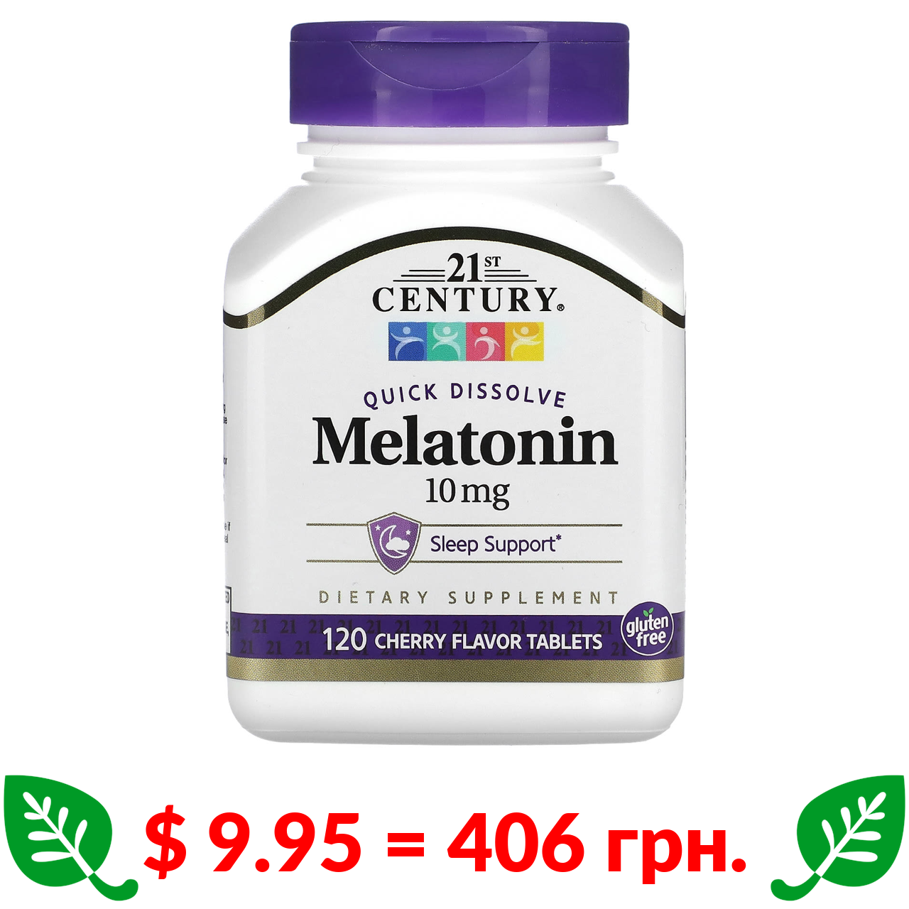 $ 9.95 = 406 грн. 21st Century, швидкорозчинний мелатонін, вишня, 10 мг, 120 таблеток