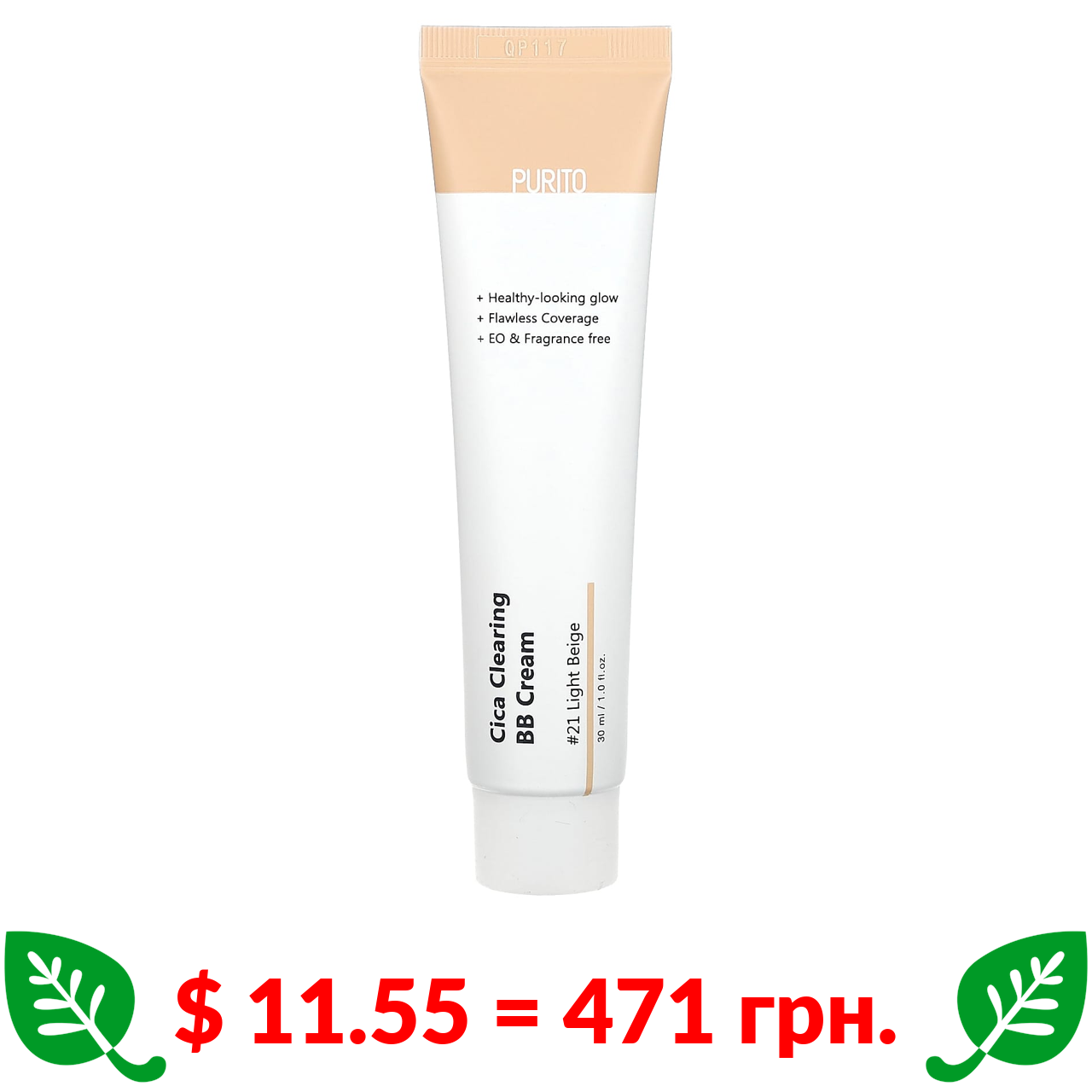 $ 11.55 = 471 грн. Purito, очищувальний BB-крем із готу колою, відтінок 21 «Світлий бежевий», 30 мл (1 рідк. унція)