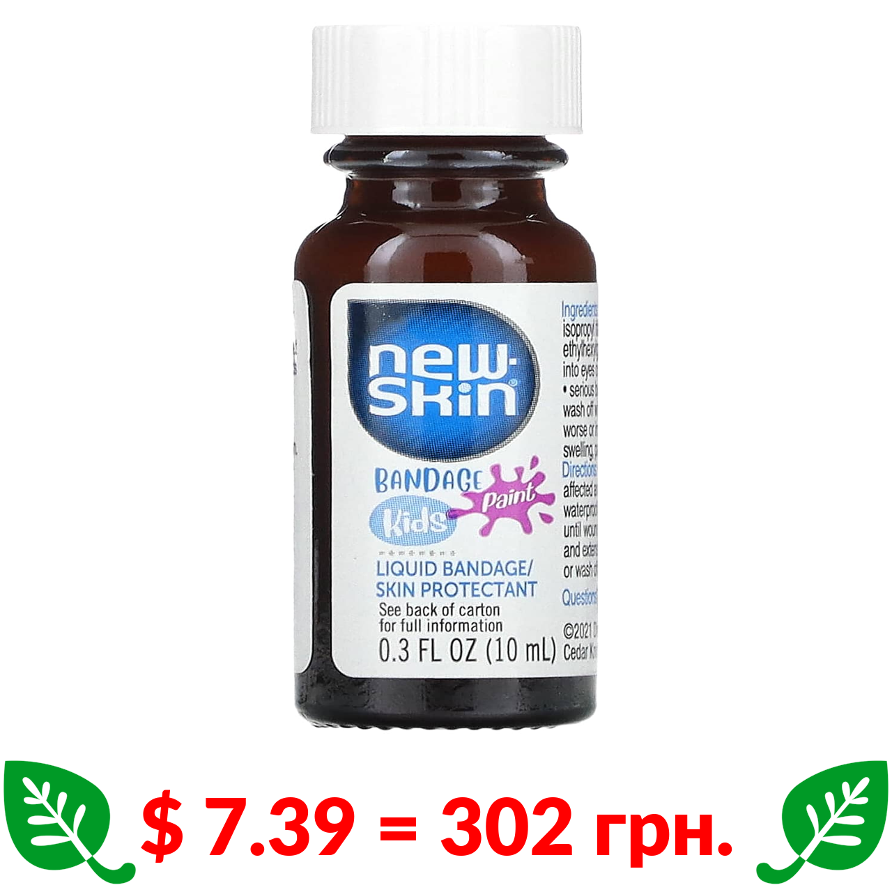 $ 7.39 = 302 грн. New Skin, Kids, Bandage Paint, рідкий бинт/засіб для захисту шкіри, фіолетовий, 10 мл (0,3 рідк. унції)