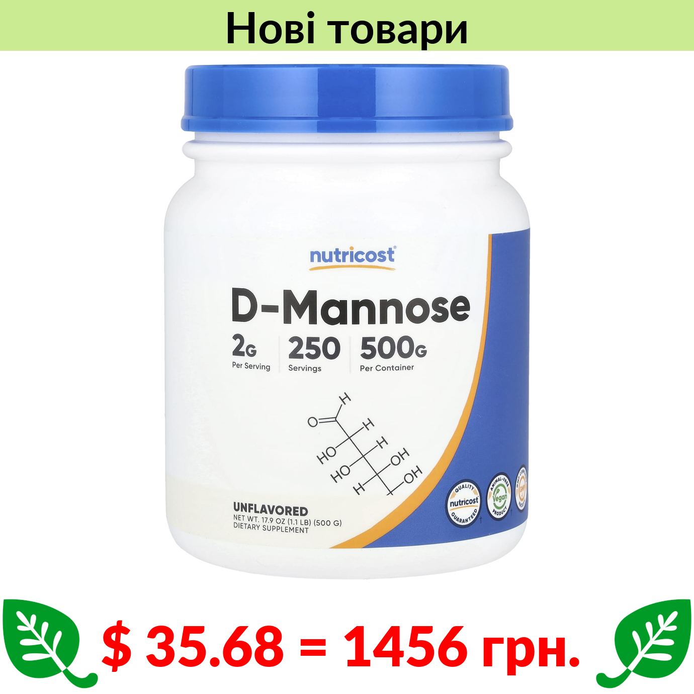 $ 35.68 = 1456 грн. ????️ у кошику ????️ Nutricost, D-Mannose, Unflavored, 1.1 lbs (500 g)