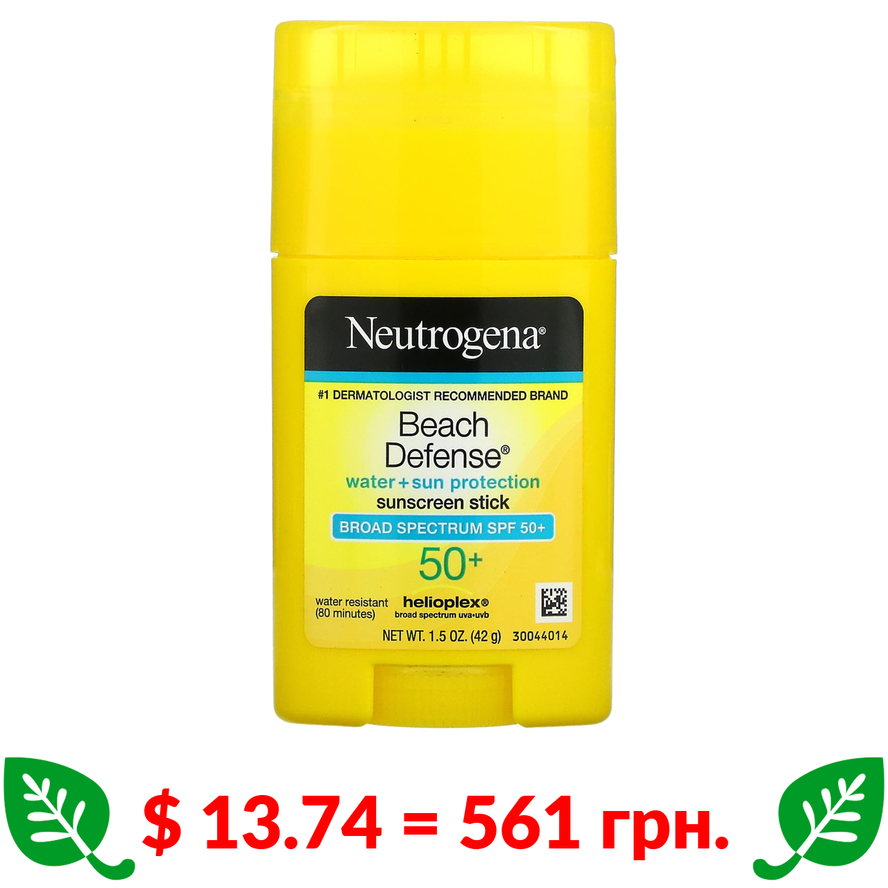 $ 13.74 = 561 грн. Neutrogena, Beach Defense, Сонцезахисний крем-стік, SPF 50+, 1,5 унції (42 г)