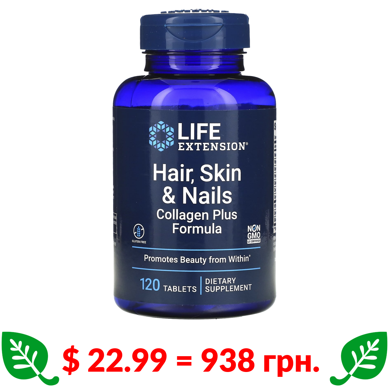 $ 22.99 = 938 грн. Life Extension, комплекс для волосся, шкіри та нігтів, з колагеном, 120 таблеток