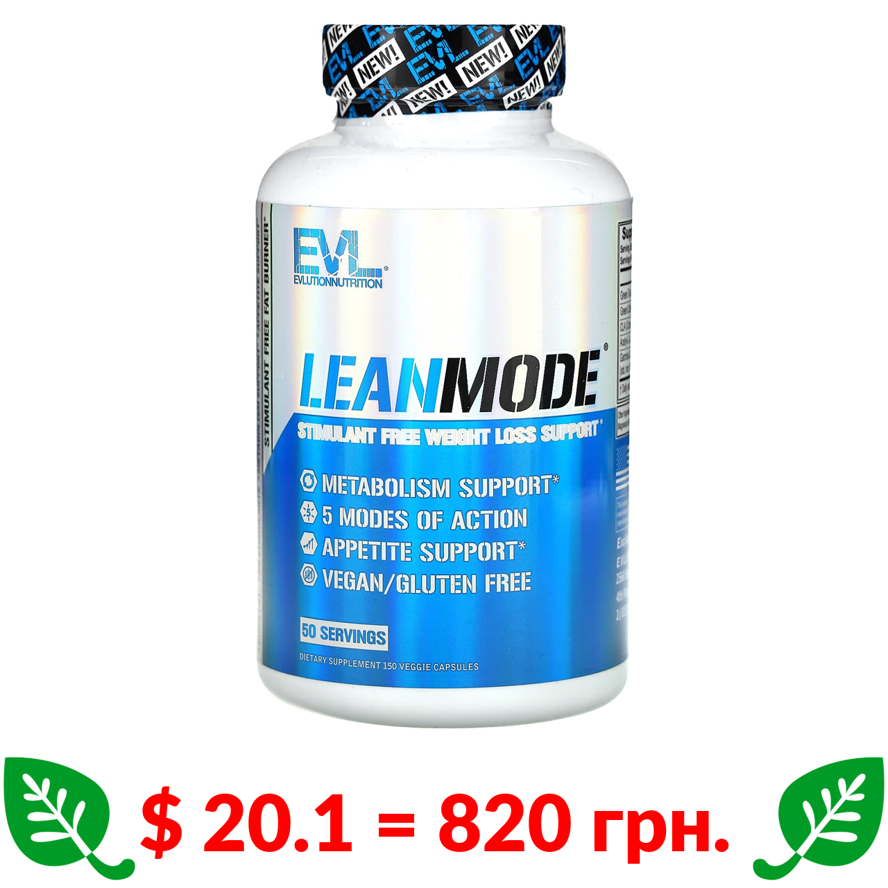 $ 20.1 = 820 грн. ????️ у кошику ????️ EVLution Nutrition, LeanMode, засіб для підтримки зниження ваги без стимуляторів, 150 веганських капсул