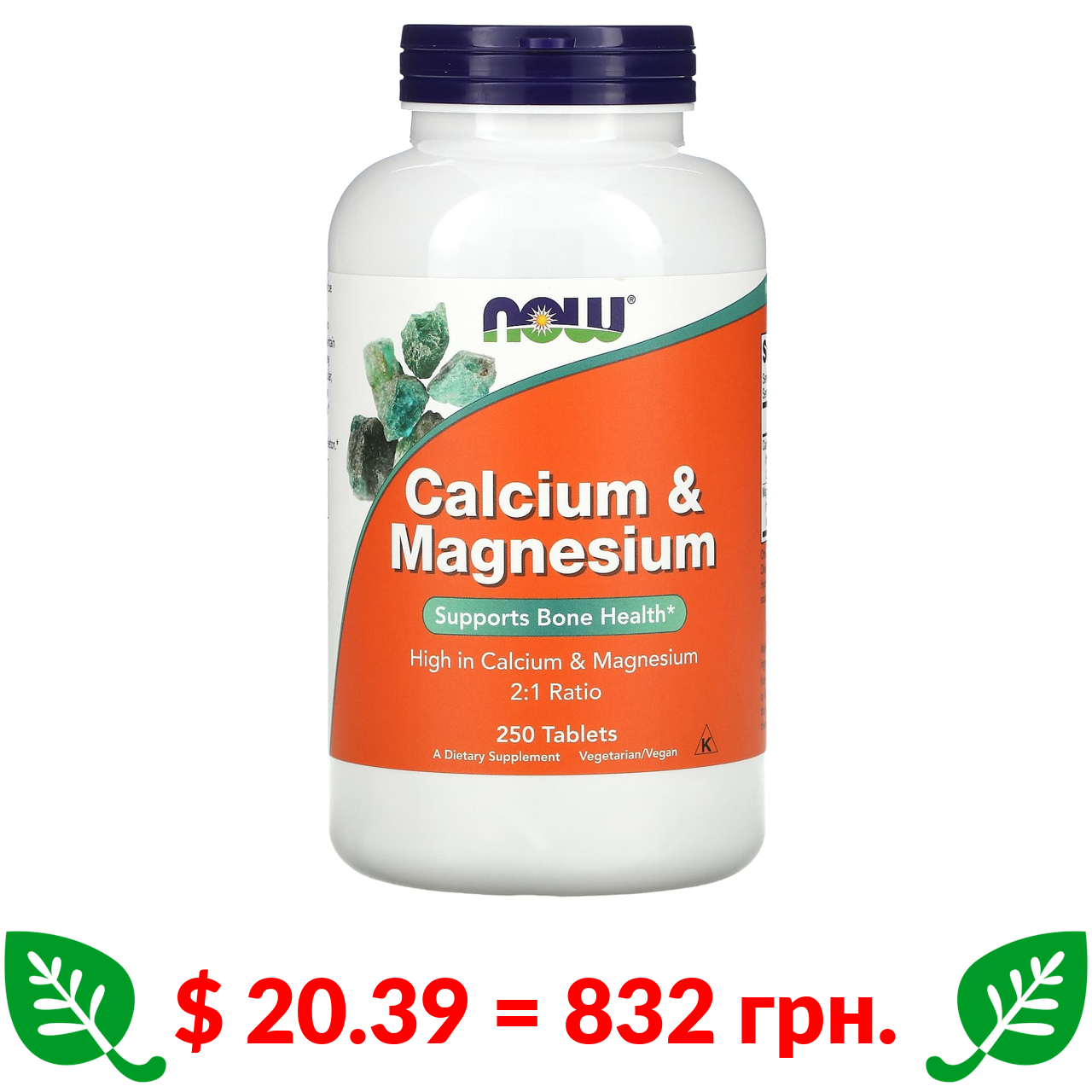 $ 20.39 = 832 грн. Now Foods, кальцій і магній, 250 таблеток