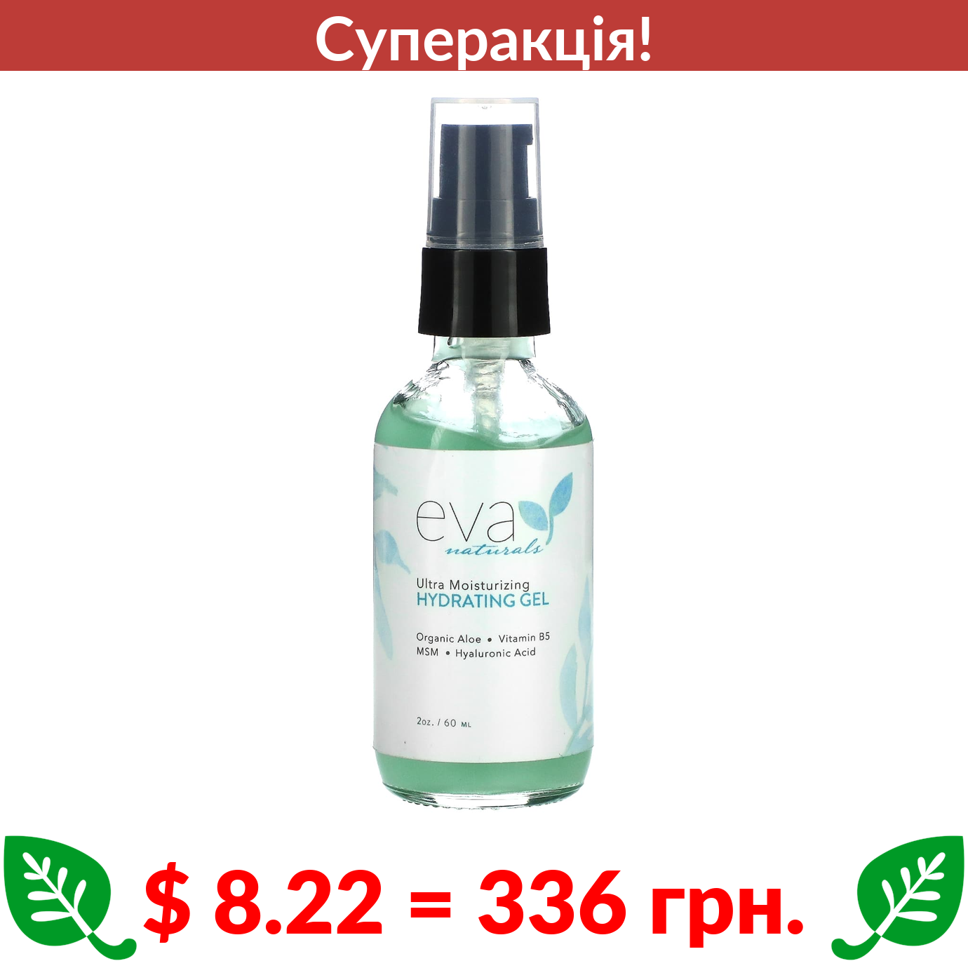 $ 8.22 = 336 грн. ???? cуперакція! ???? Eva Naturals, Ультразволожуючий зволожуючий гель, 2 унції (60 мл)