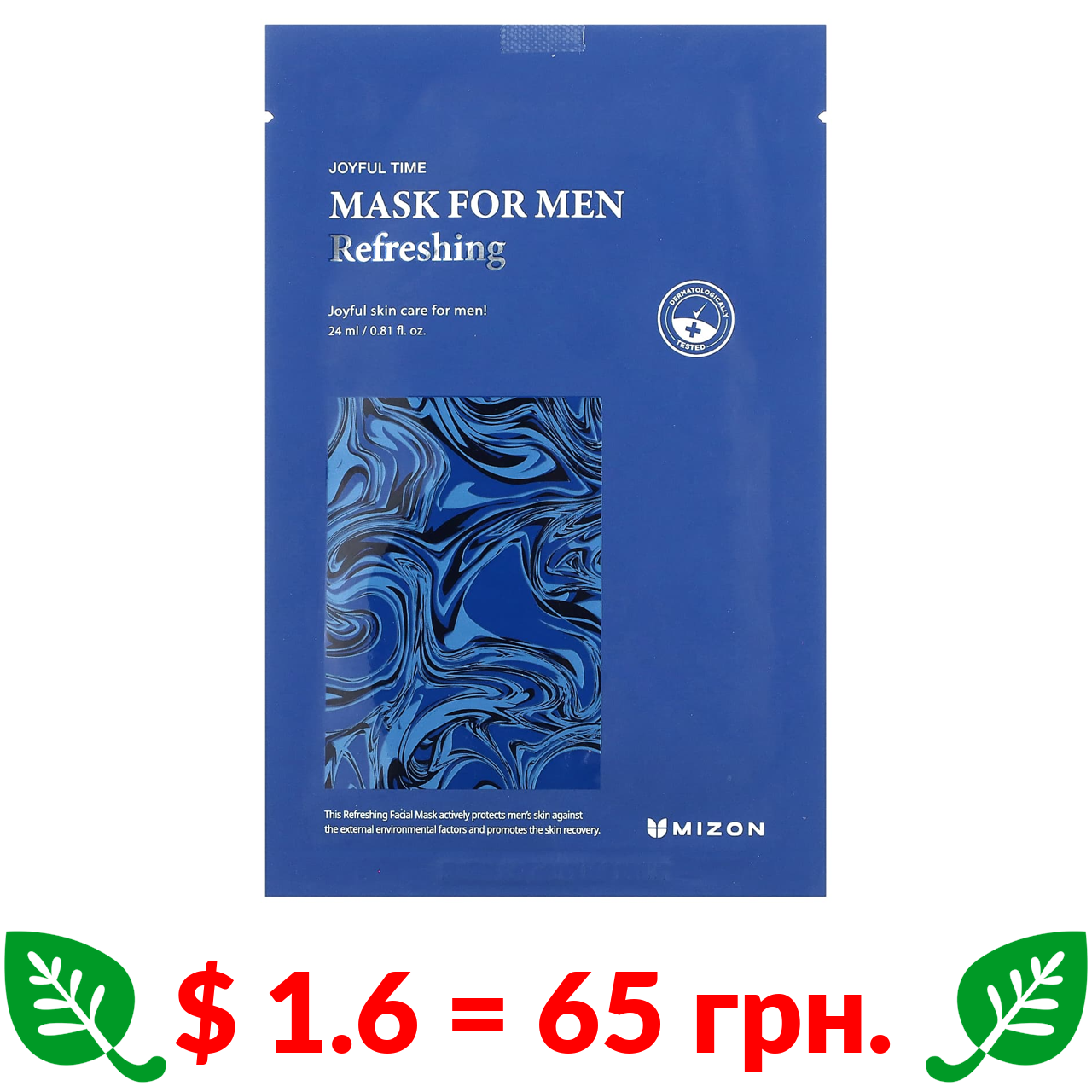 $ 1.6 = 65 грн. ????️ у кошику ????️ Mizon, освіжаюча маска для чоловіків, 1 шт., 24 мл (0,81 рідк. унції)