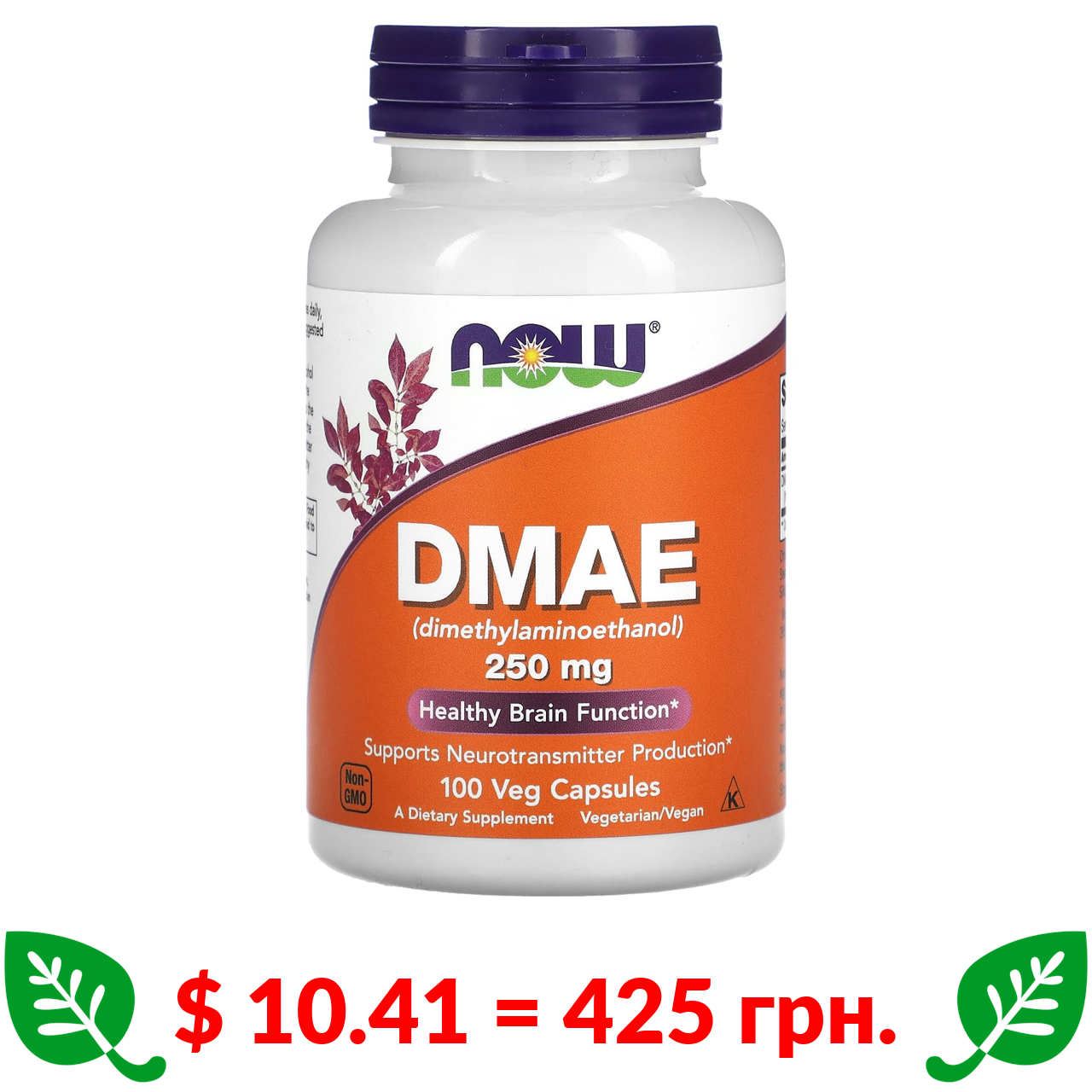 $ 10.41 = 425 грн. Now Foods, ДМАЕ, 250 мг, 100 вегетаріанських капсул