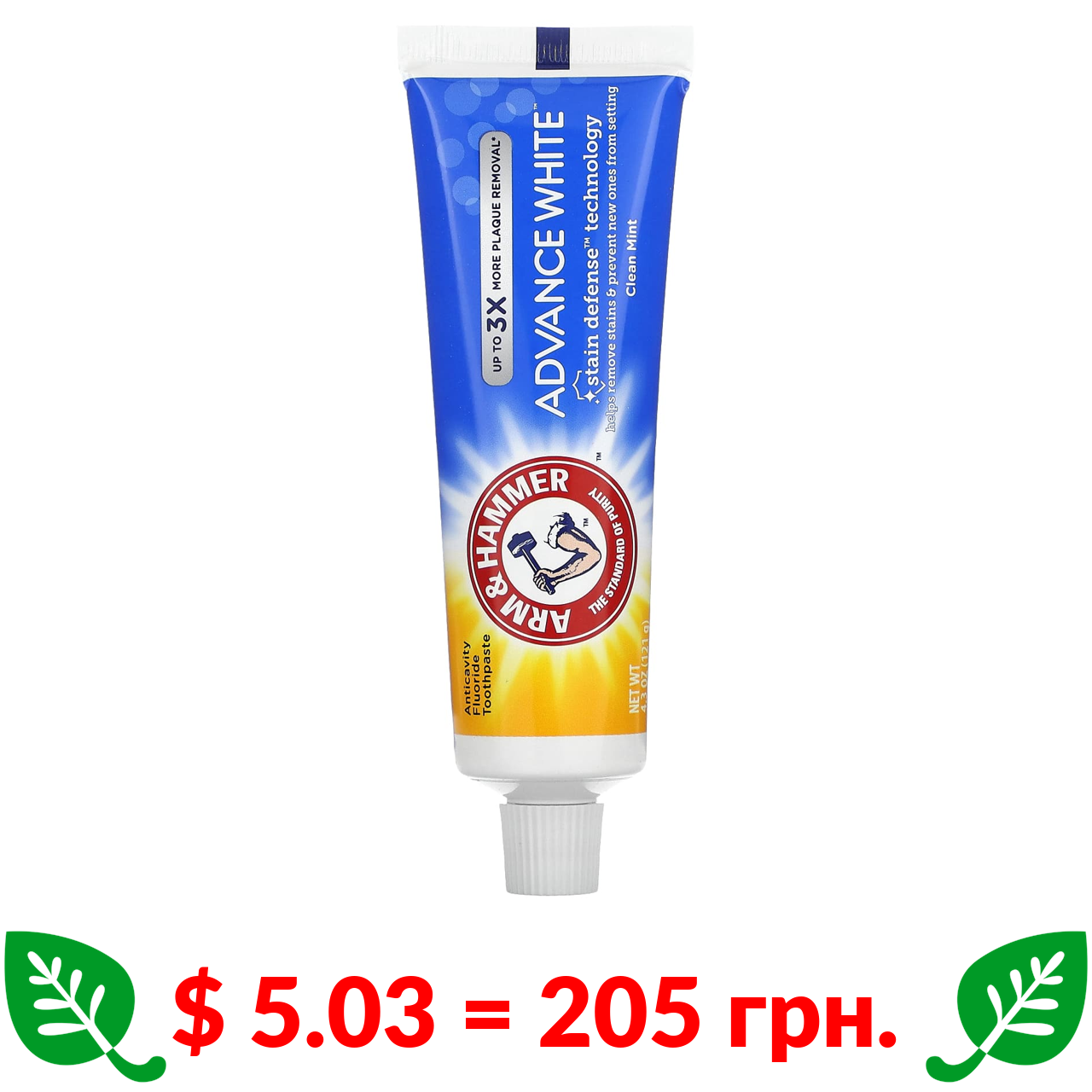 $ 5.03 = 205 грн. Arm & Hammer, AdvanceWhite, відбілювальна зубна паста підвищеної ефективності, м’ята, 121 г (4,3 унції)