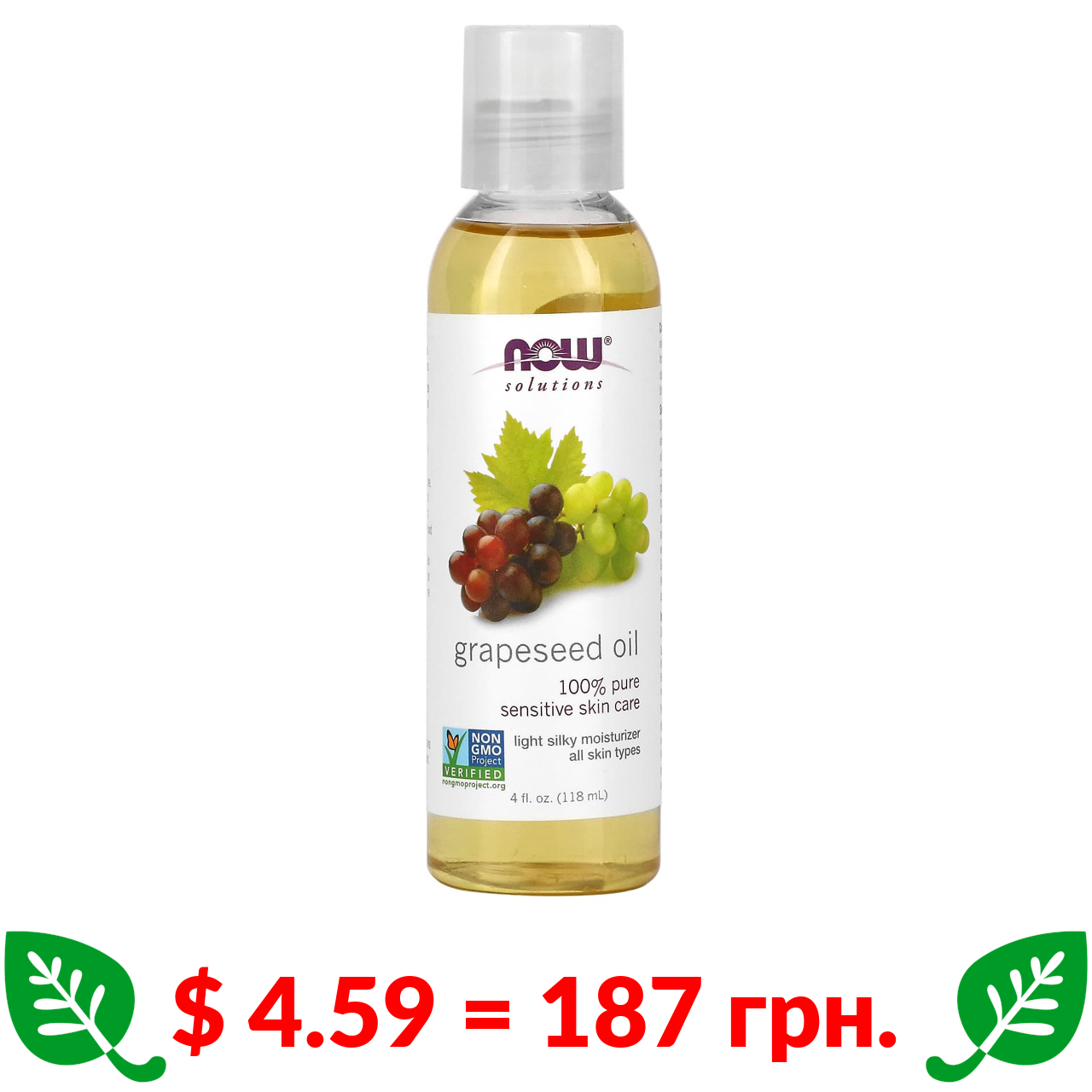 $ 4.59 = 187 грн. Now Foods, Solutions, олія з виноградних кісточок, 118 мл (4 рідк. унції)