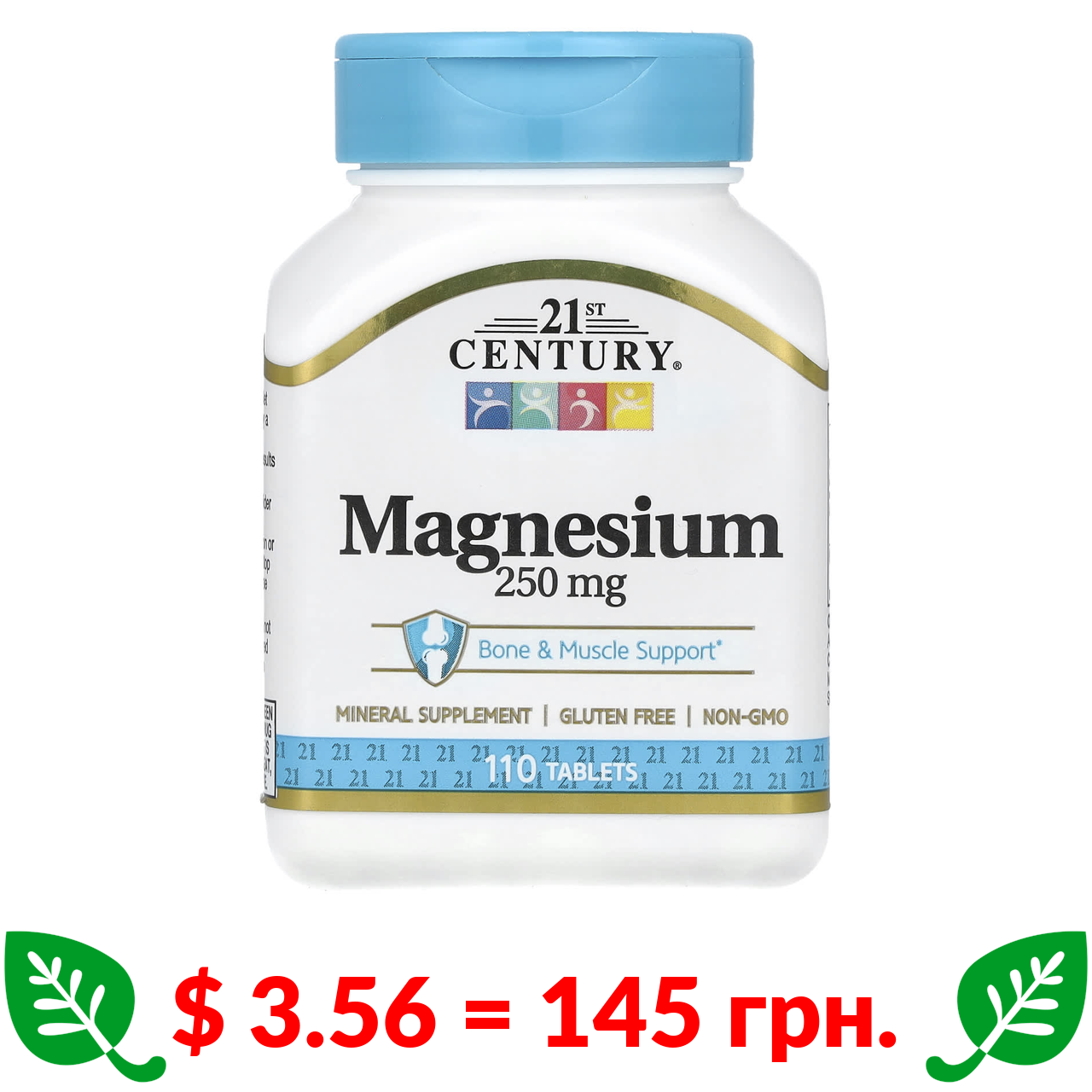 $ 3.56 = 145 грн. 21st Century, магній, 250 мг, 110 таблеток