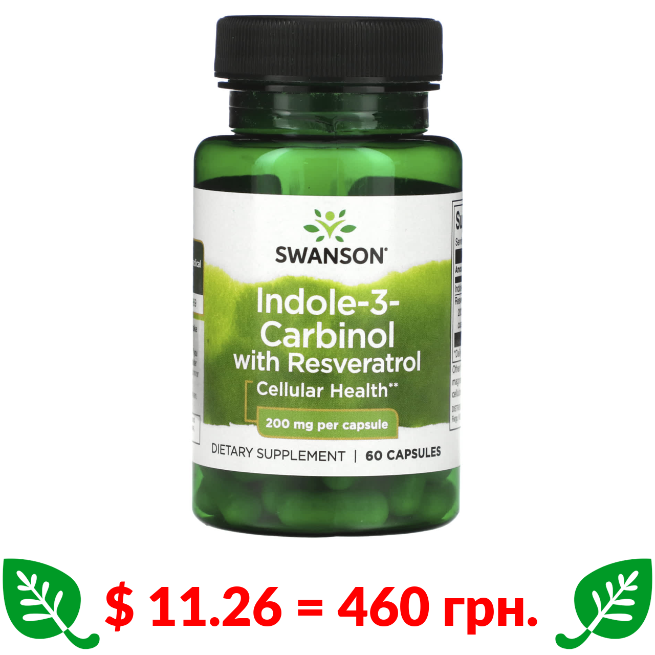 $ 11.26 = 460 грн. Swanson, індол-3-карбінол із ресвератролом, 200 мг, 60 капсул