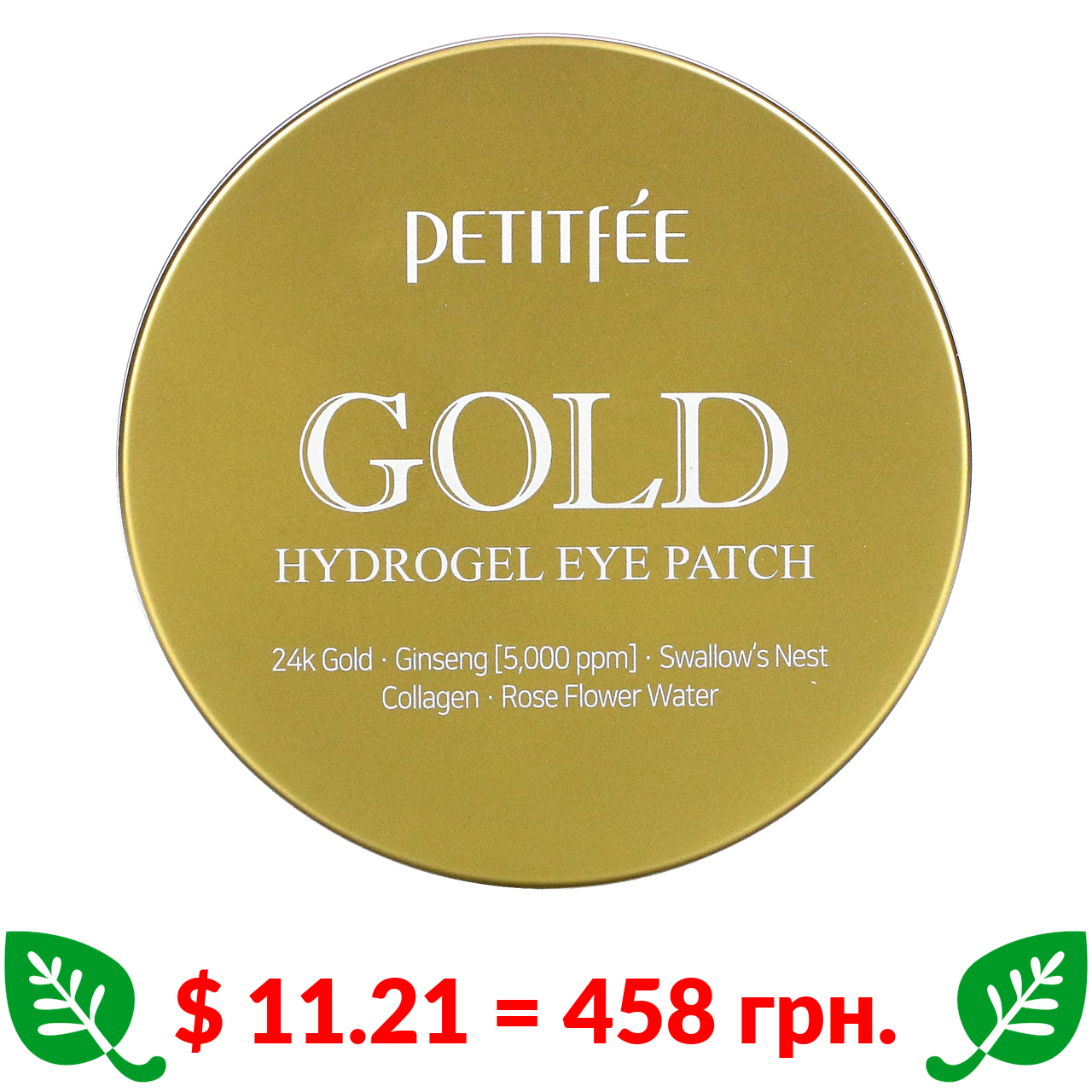 $ 11.21 = 458 грн. Petitfee, гідрогелеві патчі під очі із золотом, 60 шт.