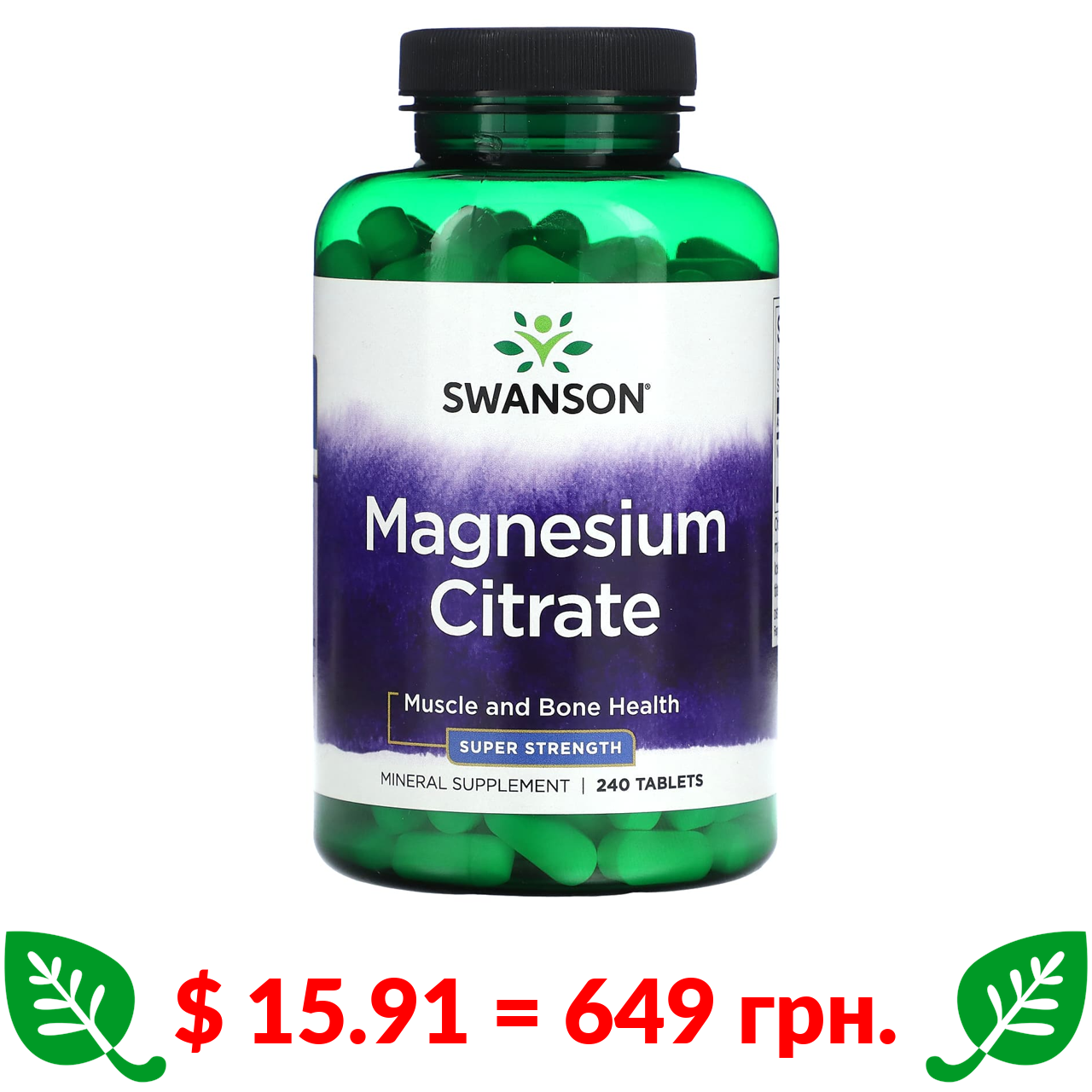 $ 15.91 = 649 грн. Swanson, цитрат магнію, 240 таблеток