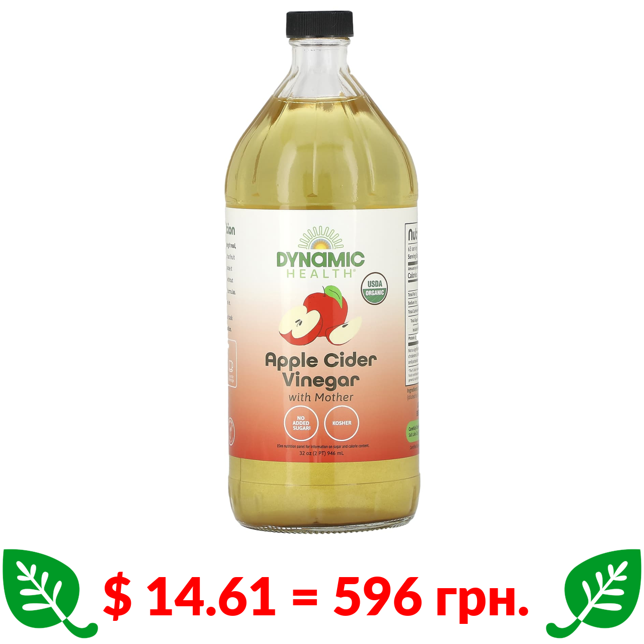 $ 14.61 = 596 грн. Dynamic Health, яблучний оцет з маткою, 946 мл (32 рідк. унції)