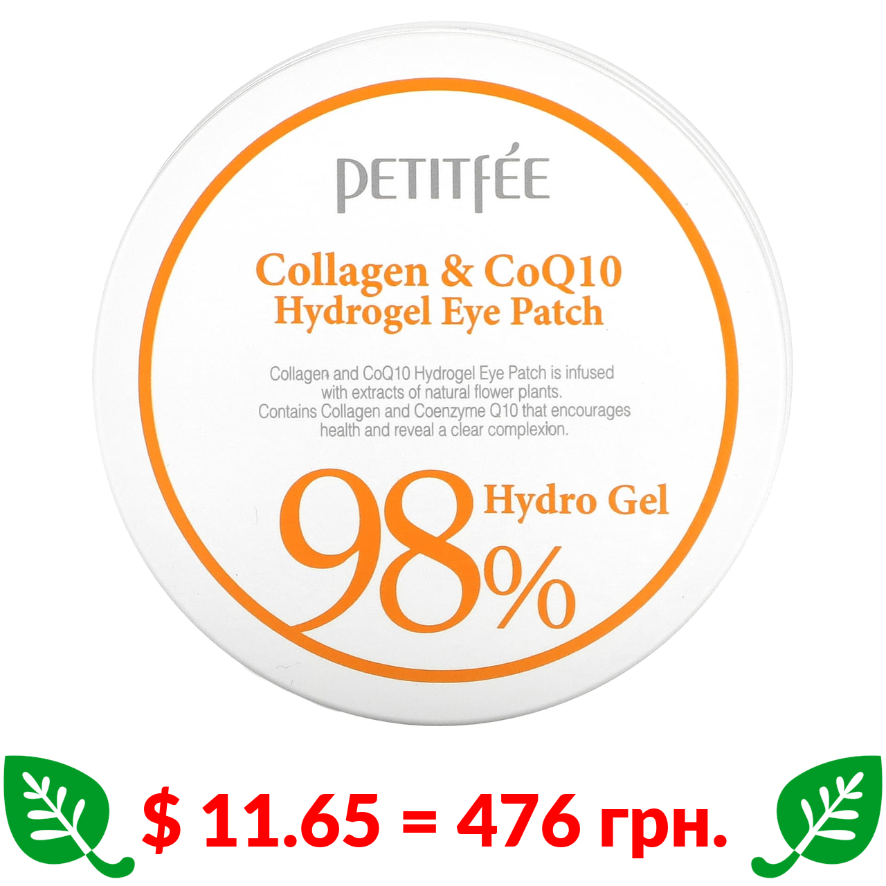 $ 11.65 = 476 грн. Petitfee, гідрогелеві патчі для очей із колагеном і коензимом Q10, 60 патчів по 1,4 г