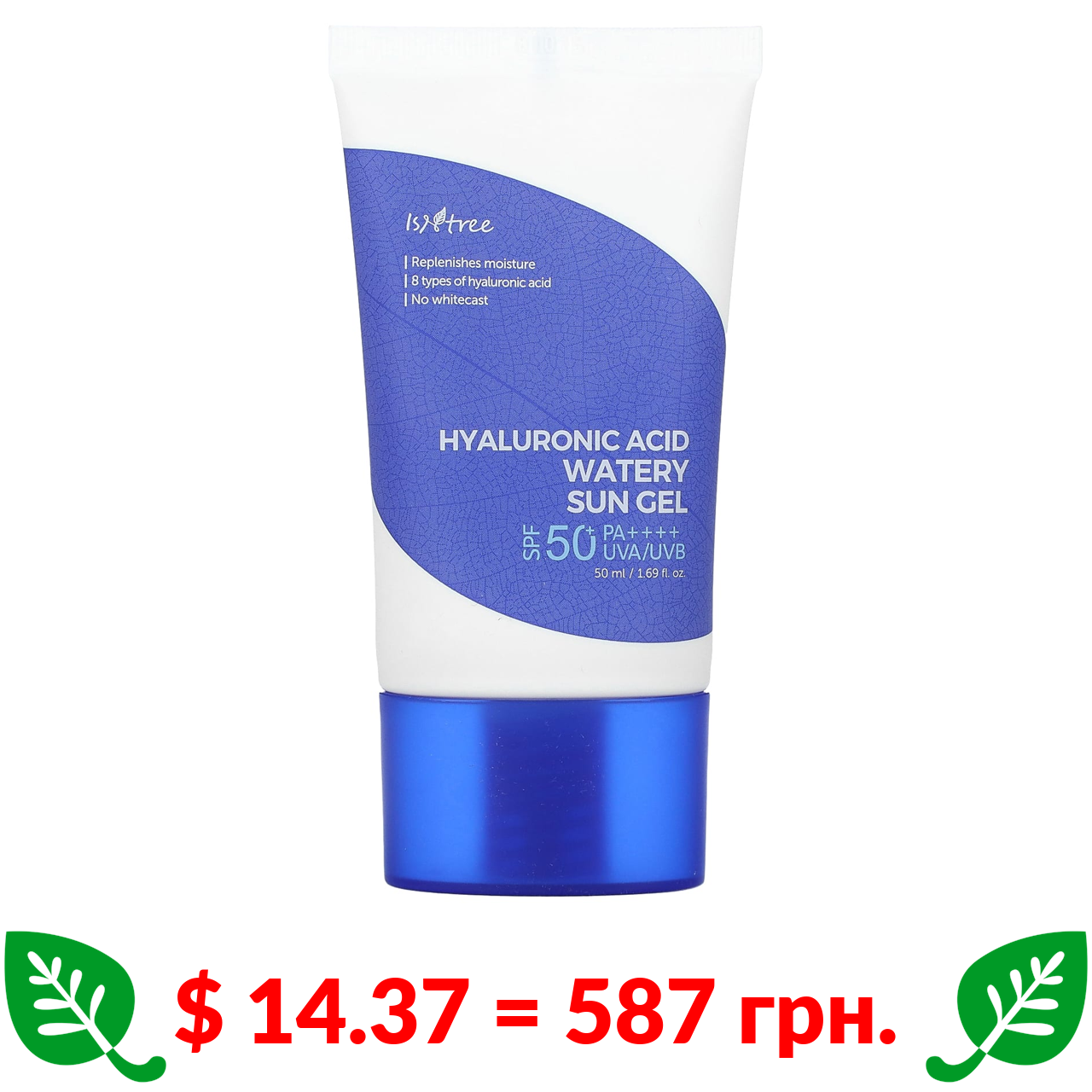 $ 14.37 = 587 грн. ????️ у кошику ????️ Isntree, Водяний сонцезахисний гель із гіалуроновою кислотою, SPF 50+ PA++++, 50 мл (1,69 рідк. унції)