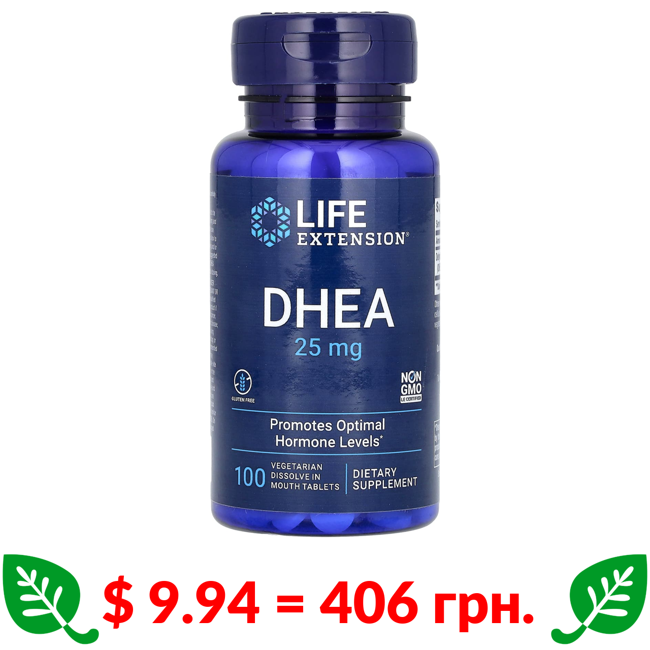$ 9.94 = 406 грн. Life Extension, ДГЕА, 25 мг, 100 вегетаріанських таблеток