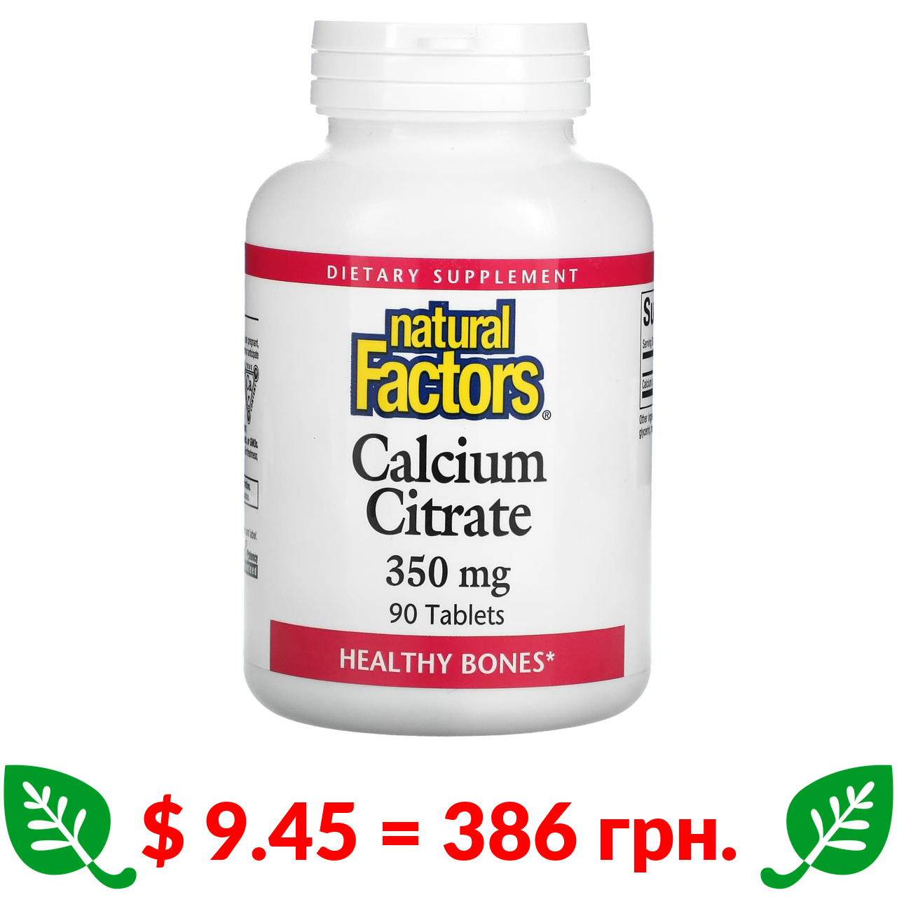 $ 9.45 = 386 грн. Natural Factors, цитрат кальцію, 350 мг, 90 таблеток