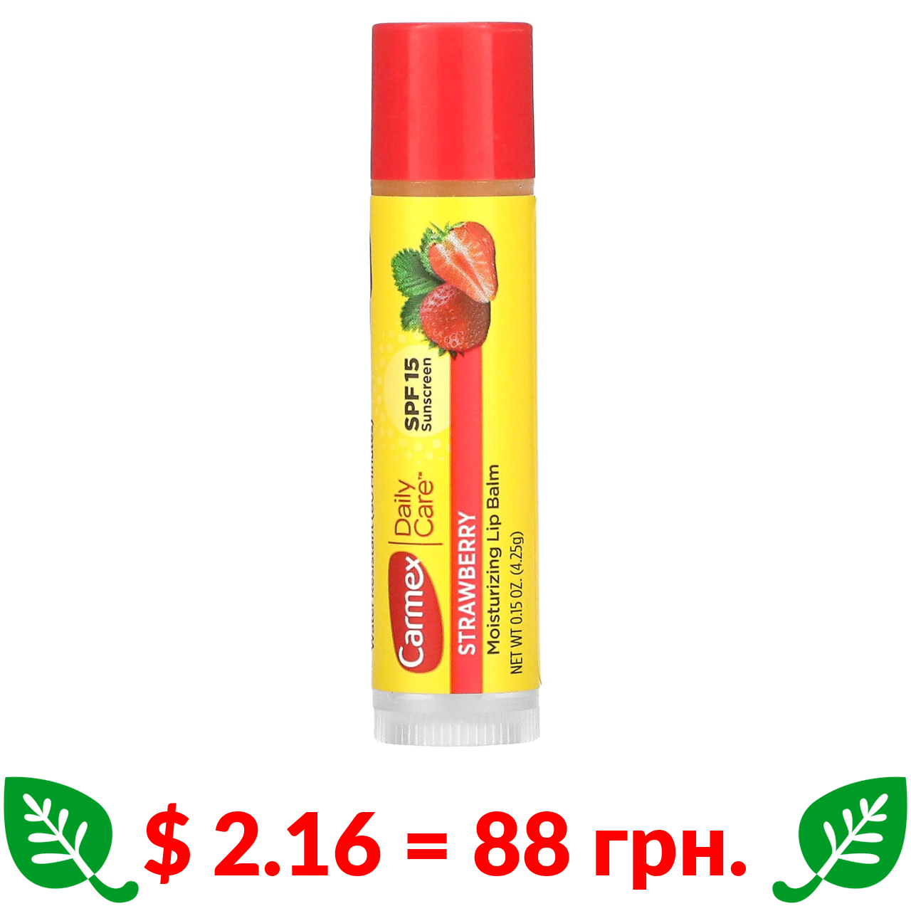 $ 2.16 = 88 грн. Carmex, щоденний догляд, зволожуючий бальзам для губ, полуниця, SPF 15, 4,25 г (15 унцій)