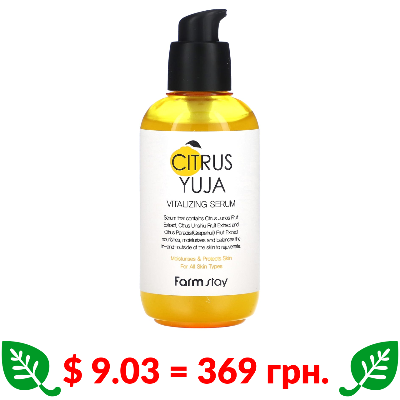 $ 9.03 = 369 грн. Farmstay, Citrus Yuja, тонізуюча сироватка, 100 мл (3,38 рідк. унції)