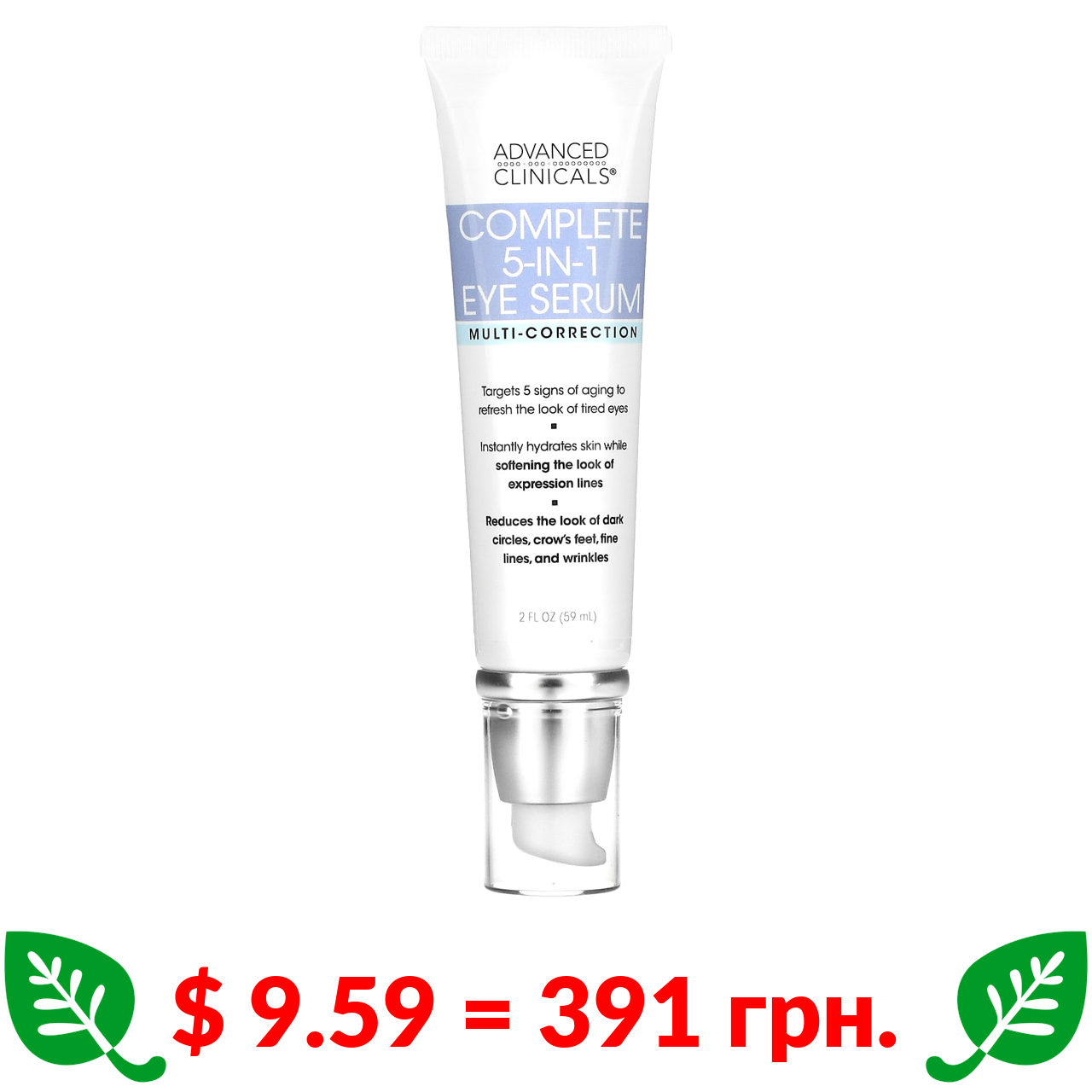 $ 9.59 = 391 грн. Advanced Clinicals, комплексна сироватка для очей «5 в 1», мультикоррекція, 59 мл (2 рідк. унції)