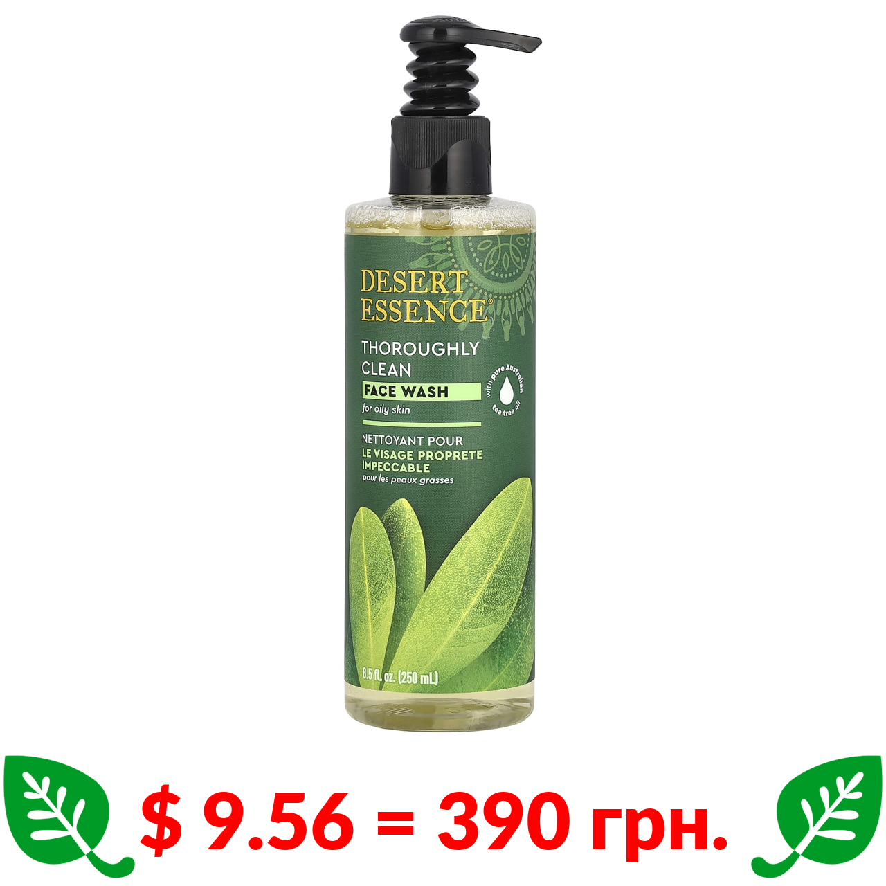 $ 9.56 = 390 грн. Desert Essence, Thoroughly Clean, гель для вмивання, для жирної шкіри, 250 мл (8,5 рідк. унції)