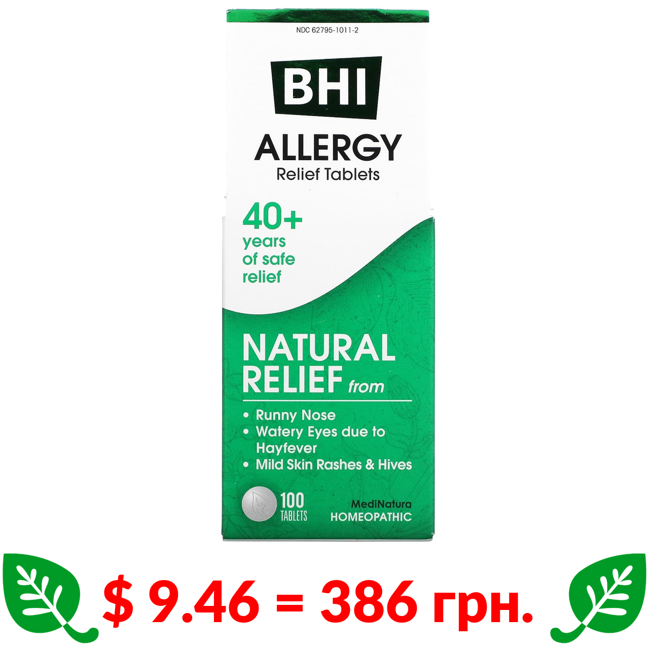 $ 9.46 = 386 грн. ????️ у кошику ????️ MediNatura, BHI, засіб від алергії, 100 таблеток