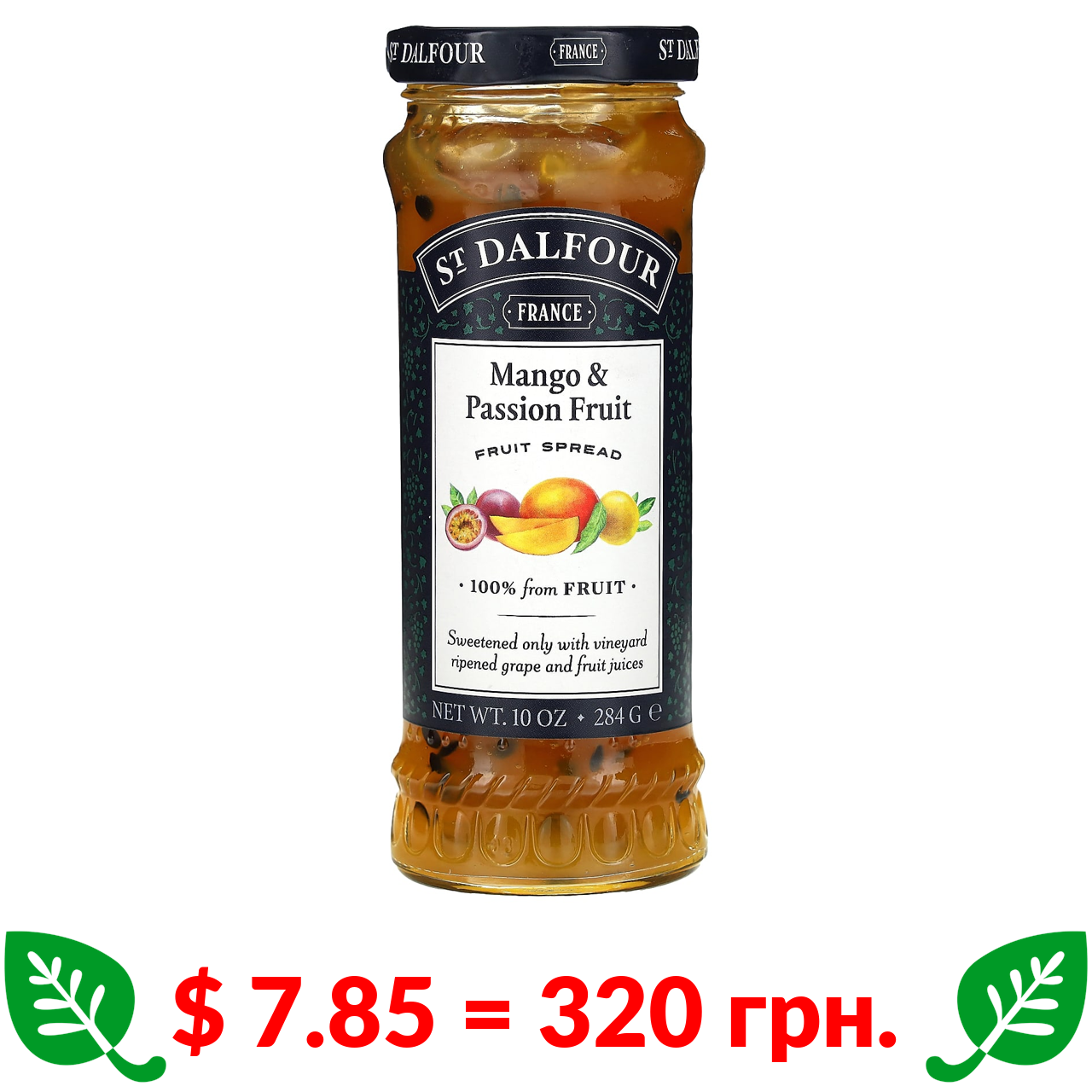 $ 7.85 = 320 грн. St. Dalfour, фруктова паста, манго та маракуйя, 284 г (10 унцій)