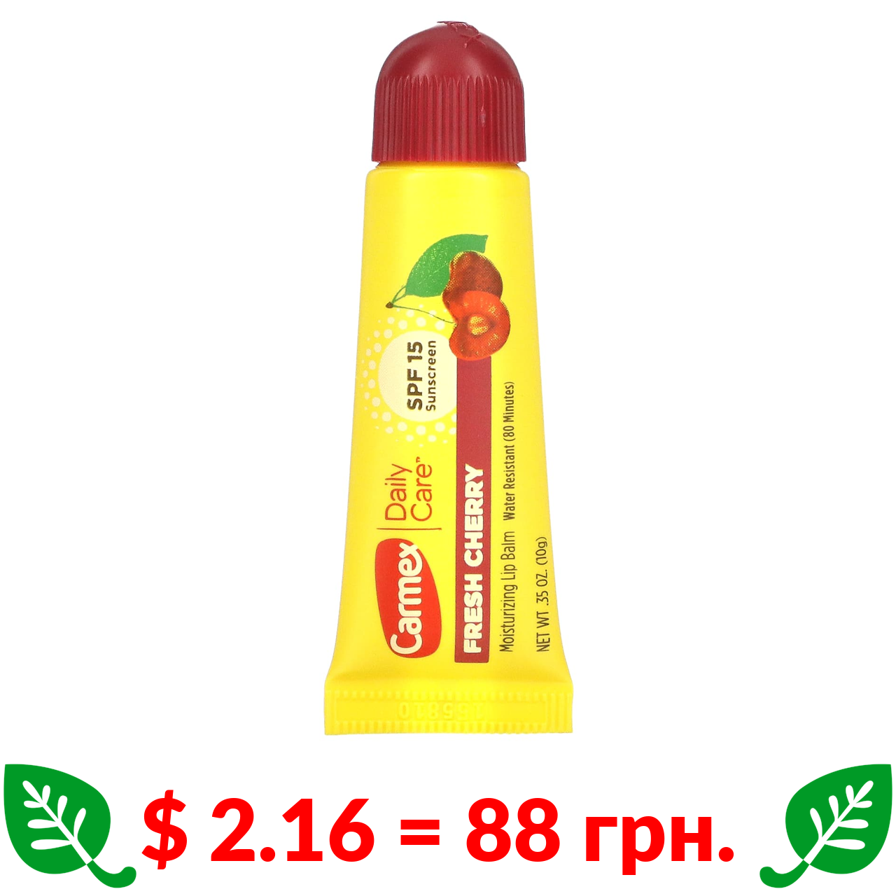 $ 2.16 = 88 грн. Carmex, Daily Care, зволожуючий бальзам для губ, свіжа вишня SPF 15, 10 г (35 унцій)