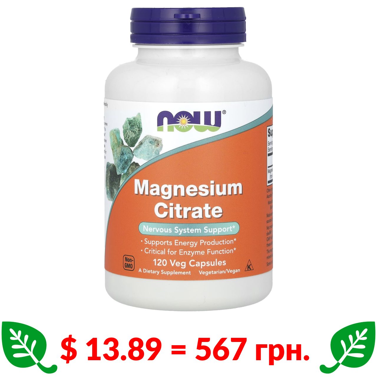$ 13.89 = 567 грн. Now Foods, цитрат магнію,120 рослинних капсул