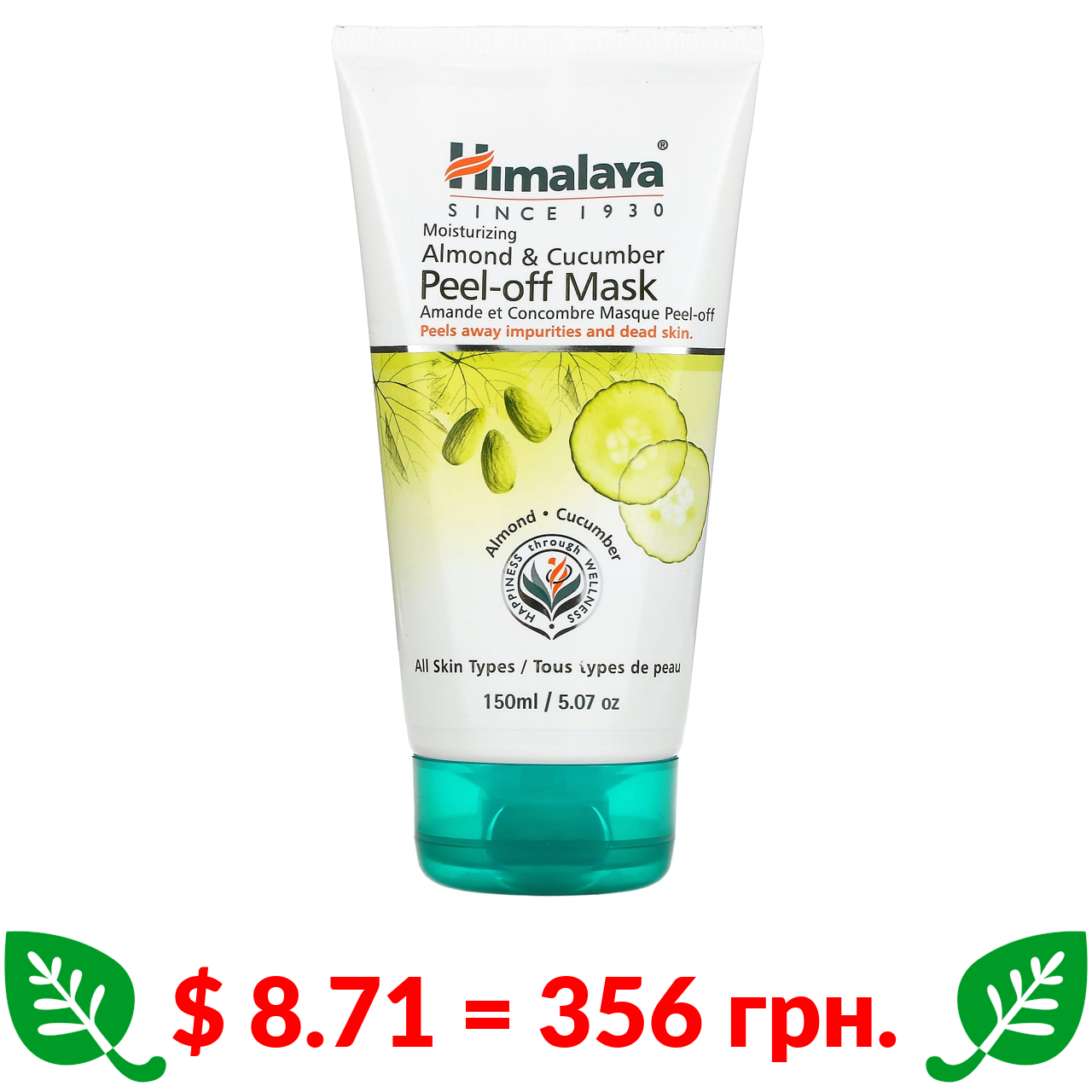 $ 8.71 = 356 грн. Himalaya, Відлущувальна маска для краси, для всіх типів шкіри, мигдаль і огірок, 5,07 рідкої унції (150 мл)