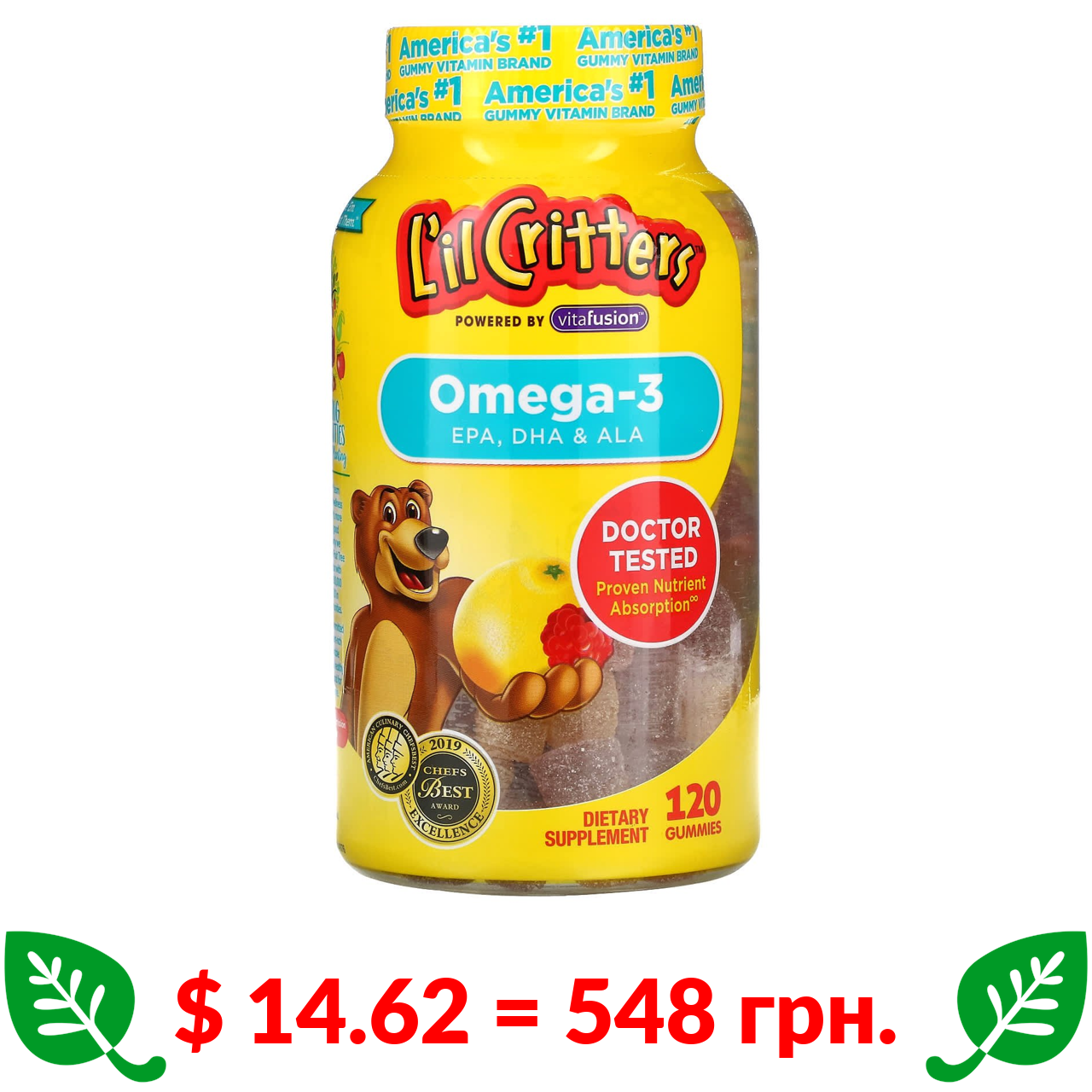 $ 14.62 = 548 грн. L’il Critters, омега-3, зі смаком малини та лимонаду, 120 жувальних цукерок