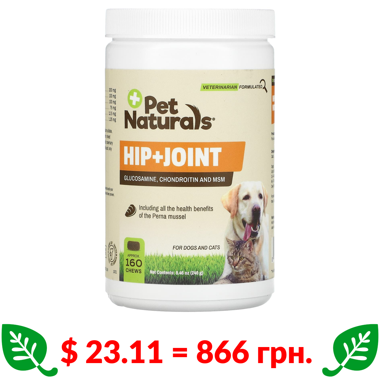 $ 23.11 = 866 грн. Pet Naturals, Hip + Joint, For Dogs and Cats, Approx. 160 Chews, 8.46 oz (240 g)