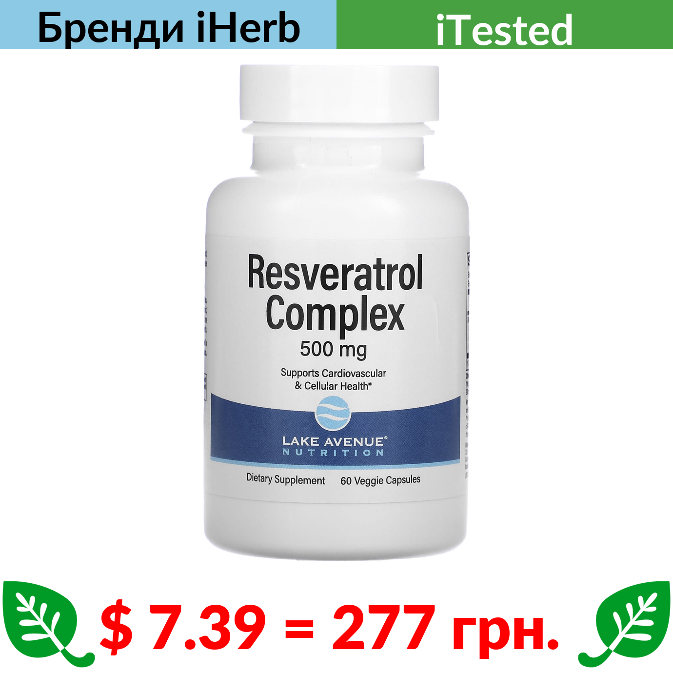$ 7.39 = 277 грн. ?️ у кошику ?️ Lake Avenue Nutrition, комплекс із ресвератролом, 500 мг, 60 капсул