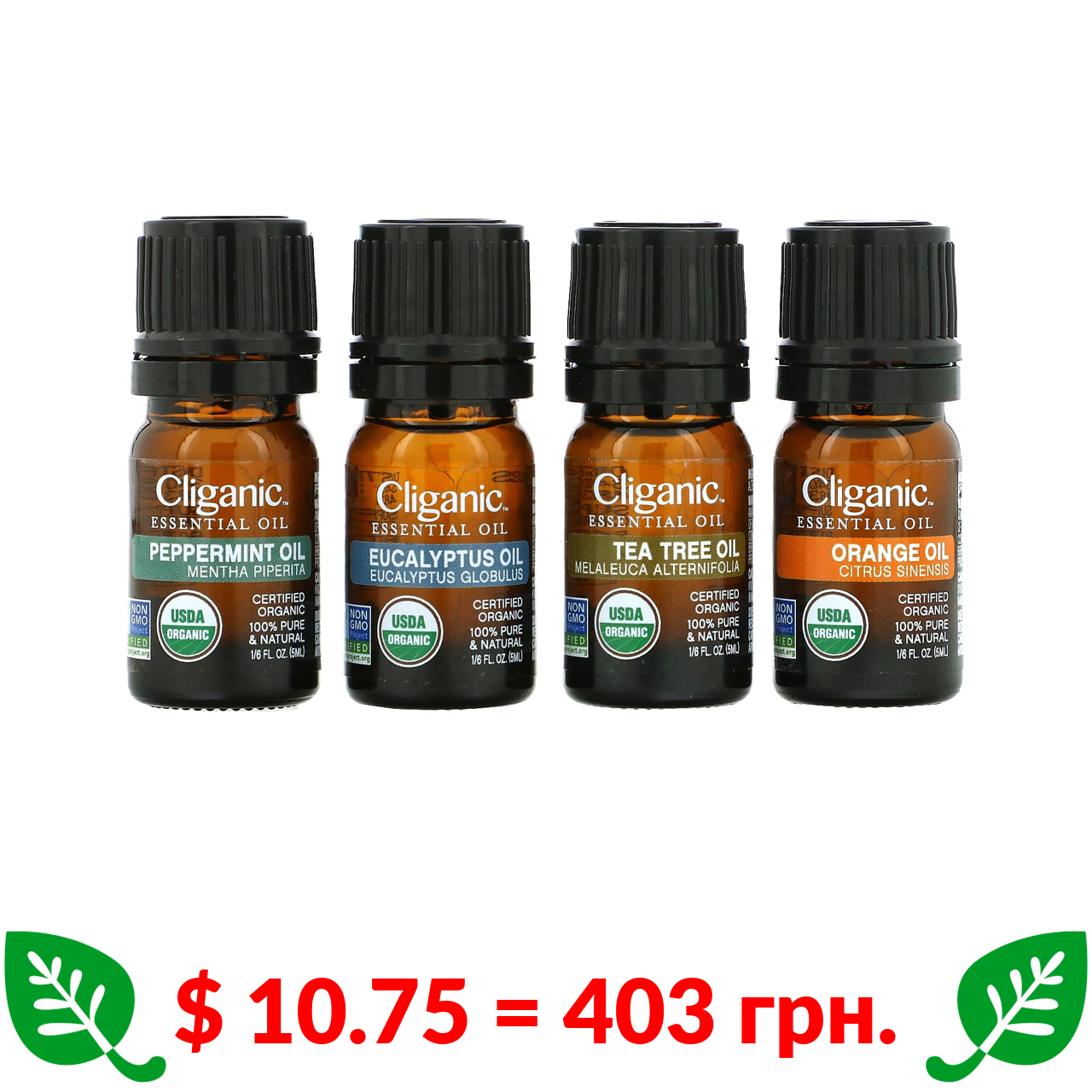 $ 10.75 = 403 грн. Cliganic, 100% Pure Essential Oil, Aromatherapy Set, 4 Piece Set