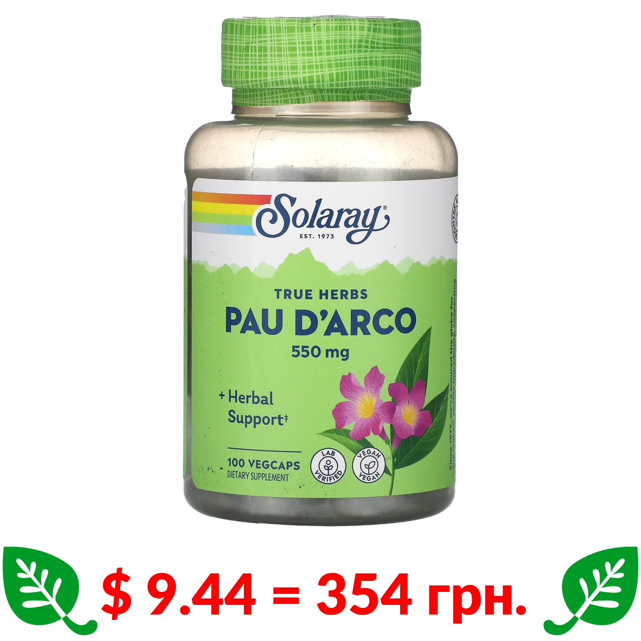 $ 9.44 = 354 грн. Solaray, кора мурашиного дерева, 550 мг, 100 рослинних капсул VegCap