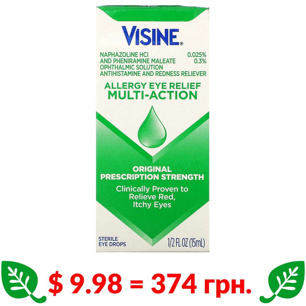 $ 9.98 = 374 грн. Visine, Allergy Eye Relief, Multi-Action Eye Drops, 1/2 fl oz (15 ml)