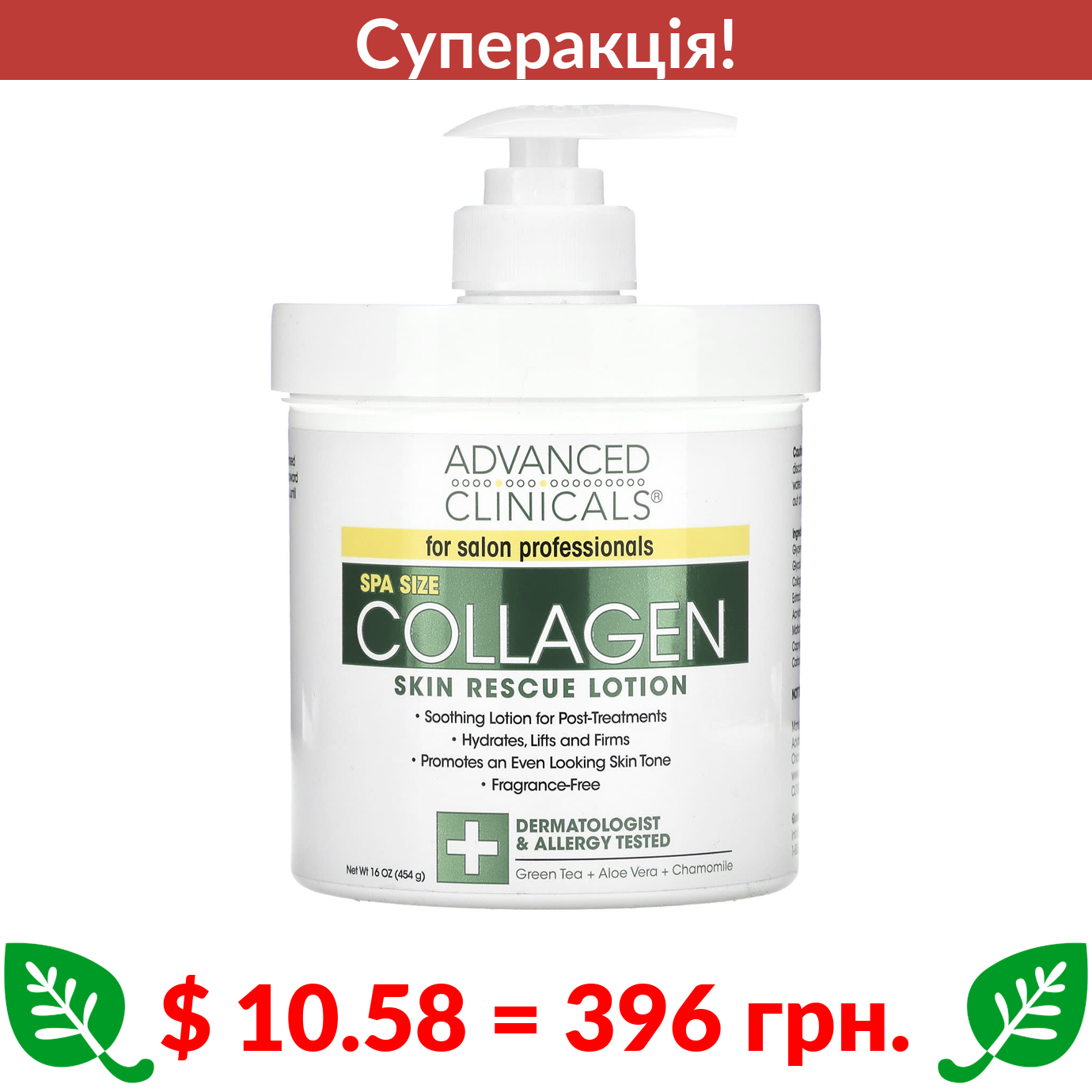 $ 10.58 = 396 грн. ? cуперакція! ? Advanced Clinicals, колаген, лосьйон для відновлення шкіри, без ароматизаторів, 454 г (16 унцій)