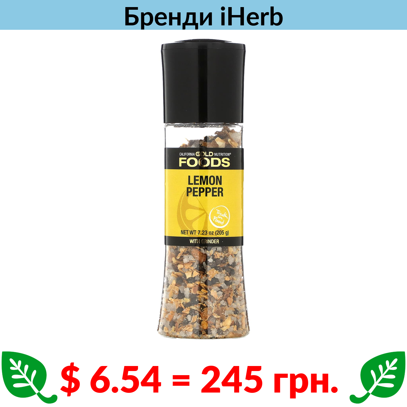 $ 6.54 = 245 грн. ?️ у кошику ?️ California Gold Nutrition, FOODS, сіль із лимоном і перцем у млинку, 205 г (7,23 унції)