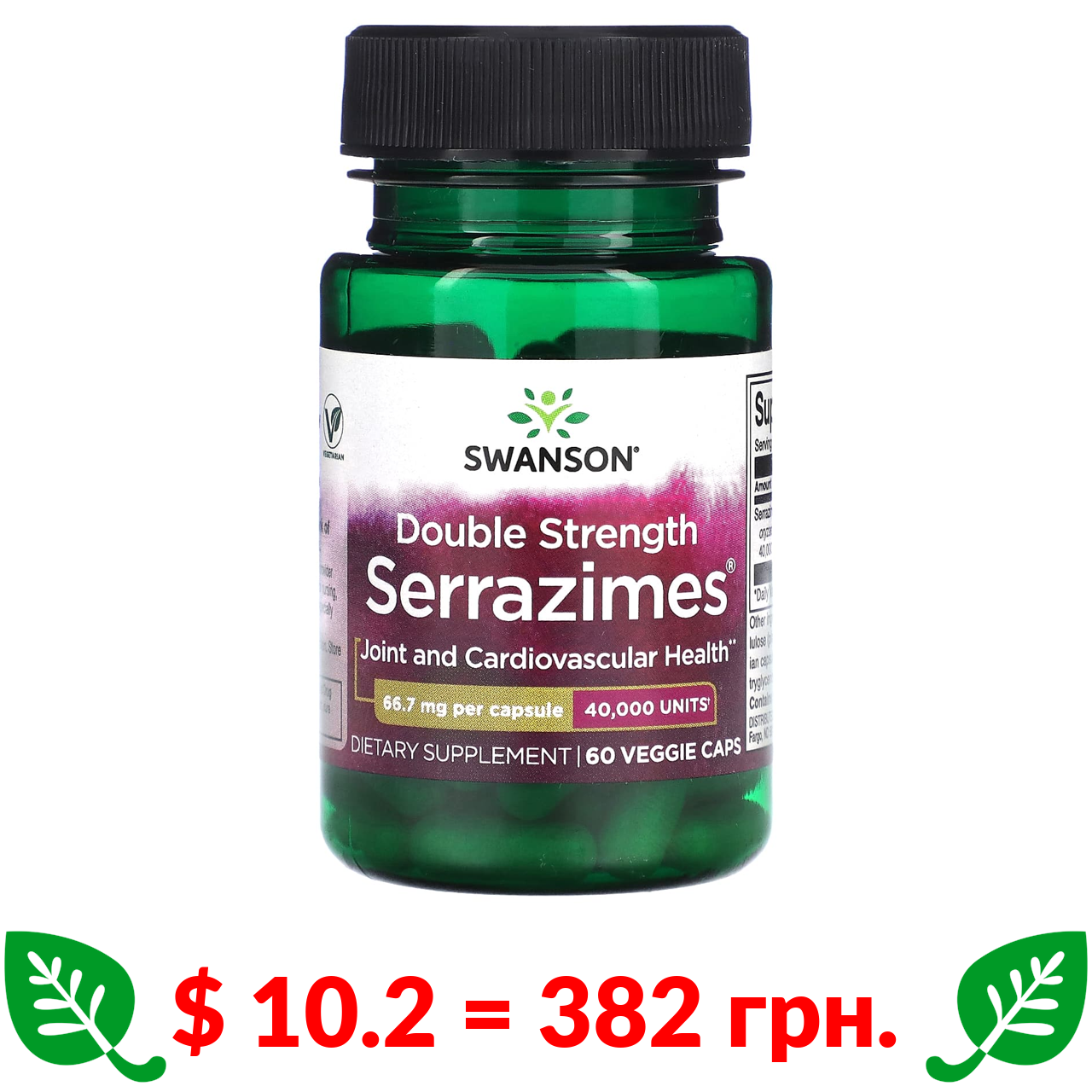 $ 10.2 = 382 грн. Swanson, Double Strength Serrazimes, 66.7 mg, 60 Veggie Capsule