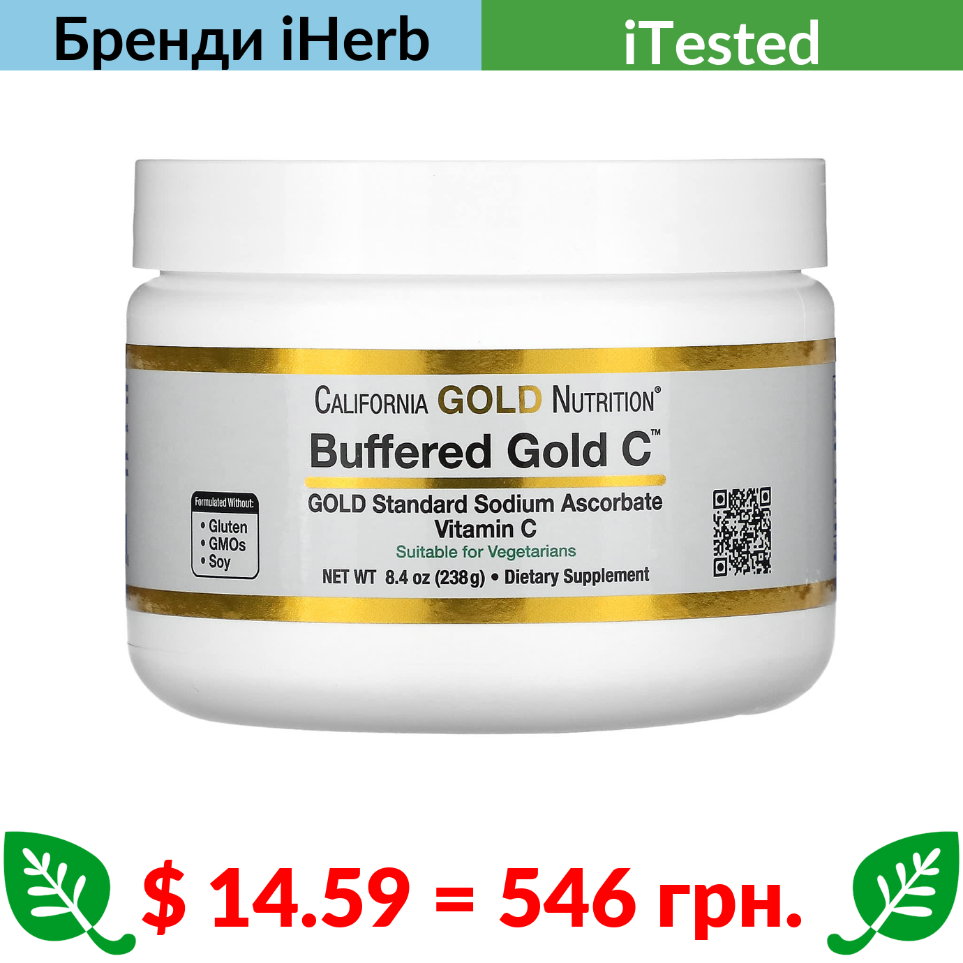 $ 14.59 = 546 грн. California Gold Nutrition, Buffered Gold C, некислий буферізований вітамін C у вигляді порошку, аскорбат натрію, 238 г (8,40 унції)