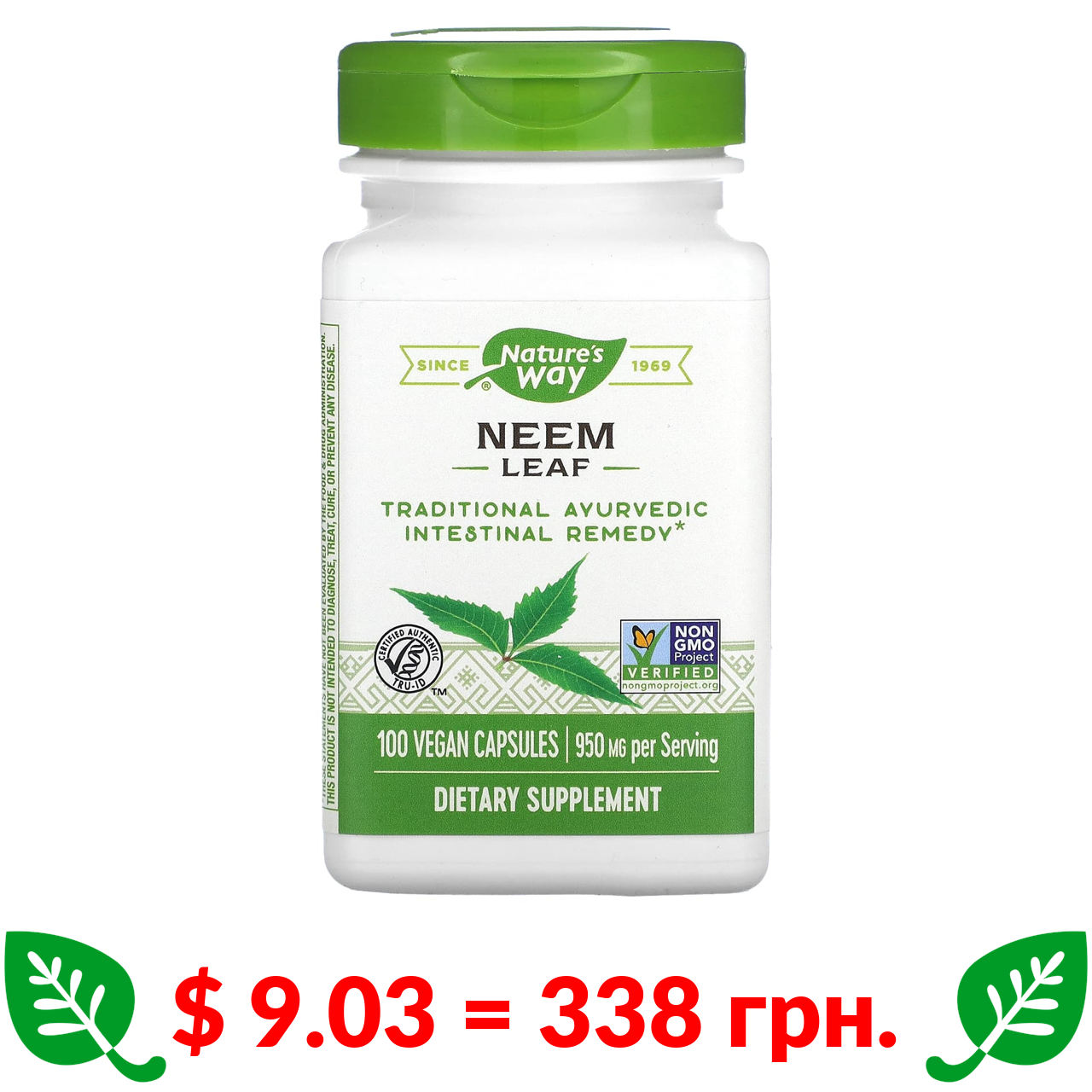 $ 9.03 = 338 грн. Nature’s Way, нім (листя), 475 мг, 100 веганських капсул