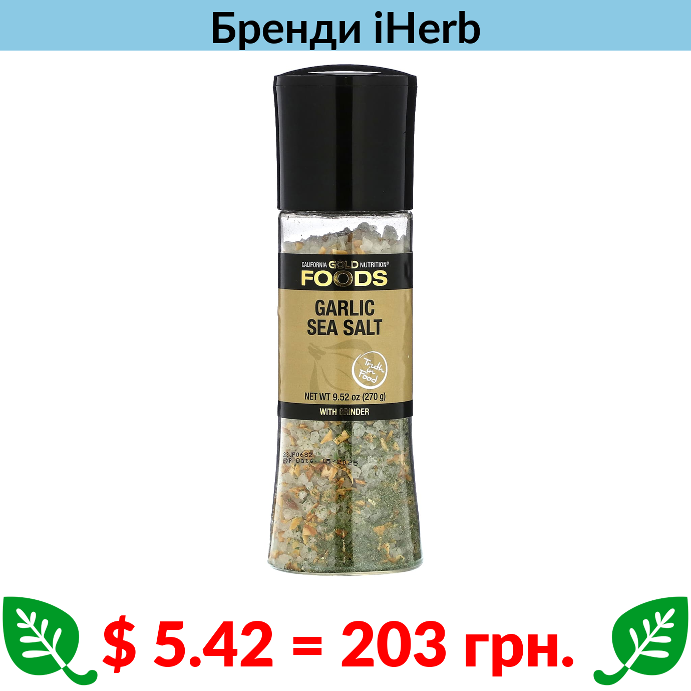 $ 5.42 = 203 грн. ?️ у кошику ?️ California Gold Nutrition, FOODS, часник, морська сіль у млинку, 270 г (9,52 унції)
