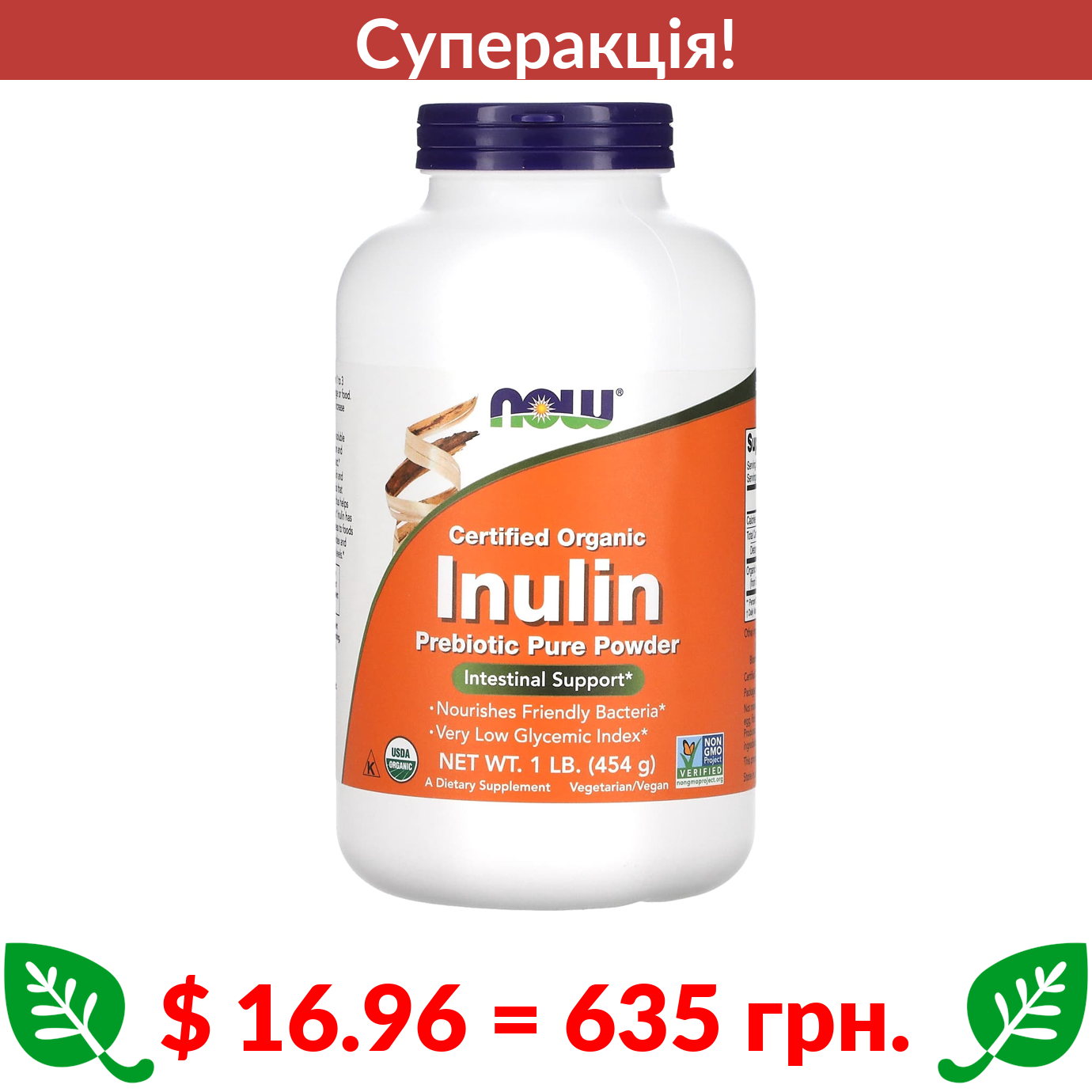 $ 16.96 = 635 грн. ? cуперакція! ? Now Foods, сертифікований органічний інулін, порошок із чистого пребіотика, 454 г (1 унцій)