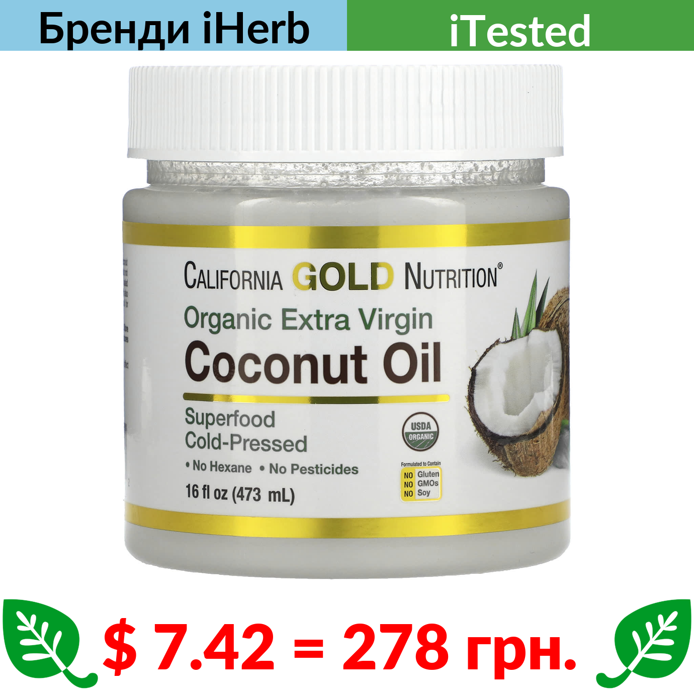 $ 7.42 = 278 грн. ?️ у кошику ?️ California Gold Nutrition, SUPERFOODS, органічна нерафінована кокосова олія першого холодного віджиму, 473 мл (16 рідк. унцій)