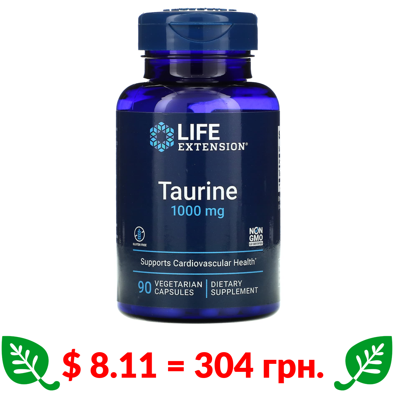 $ 8.11 = 304 грн. ?️ у кошику ?️ Life Extension, таурин, 1000 мг, 90 вегетаріанських капсул
