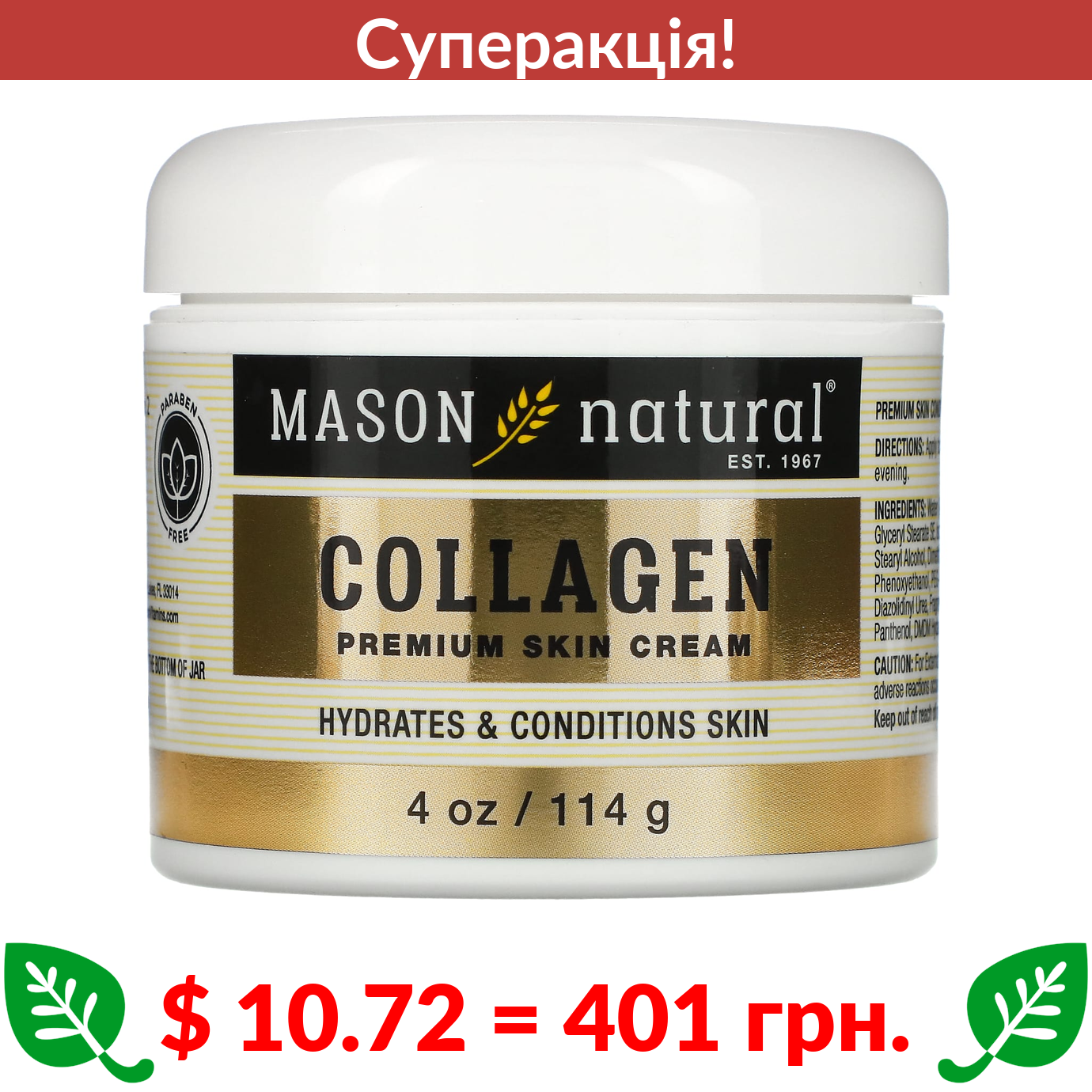 $ 6.23 = 233 грн. Mason Natural, крем для шкіри з колагеном преміальної якості, 57 г (2 унції)