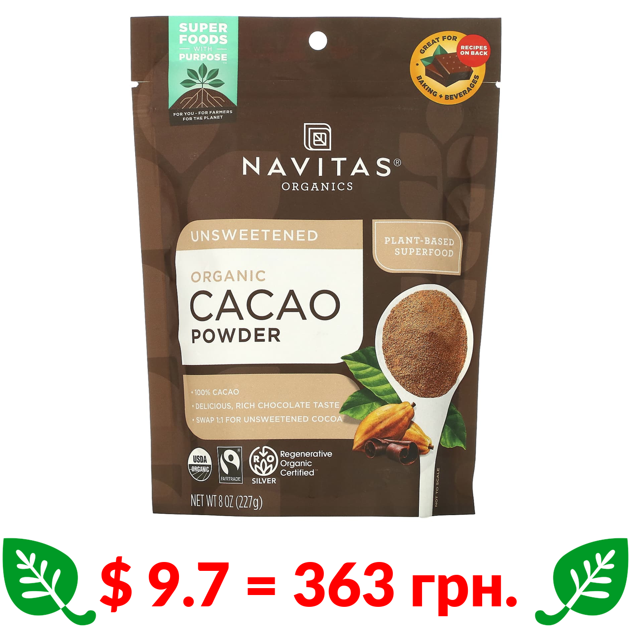 $ 9.7 = 363 грн. ?️ у кошику ?️ Navitas Organics, органічний порошок какао, 227 г (8 унції)