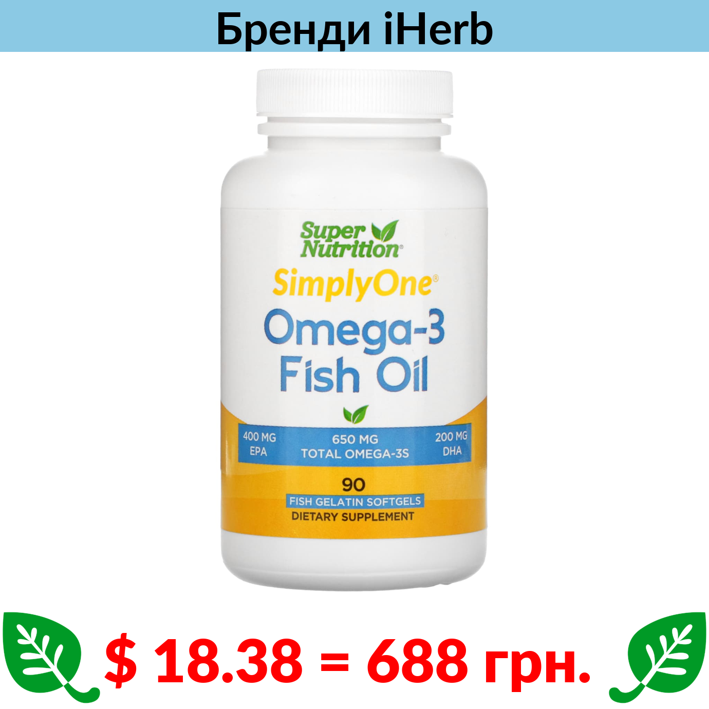 $ 18.38 = 688 грн. ?️ у кошику ?️ Super Nutrition, риб’ячий жир з омега-3, 1000 мг, 90 капсул з риб’ячого жиру